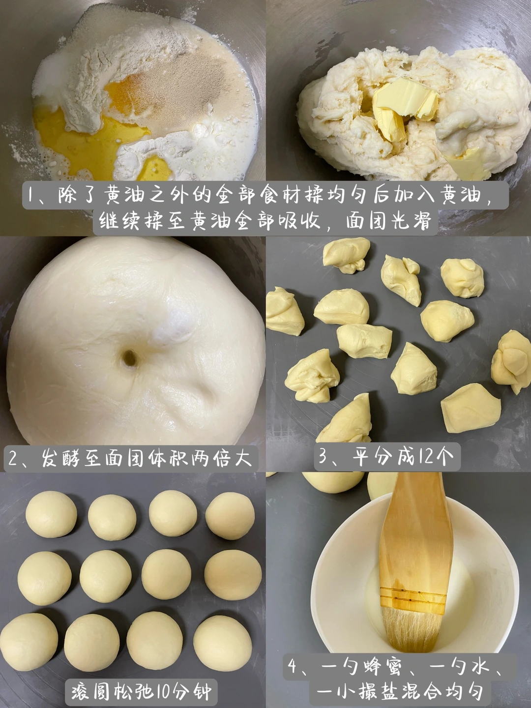 3⃣️面团排气,平分成12个,滚圆松弛10分钟