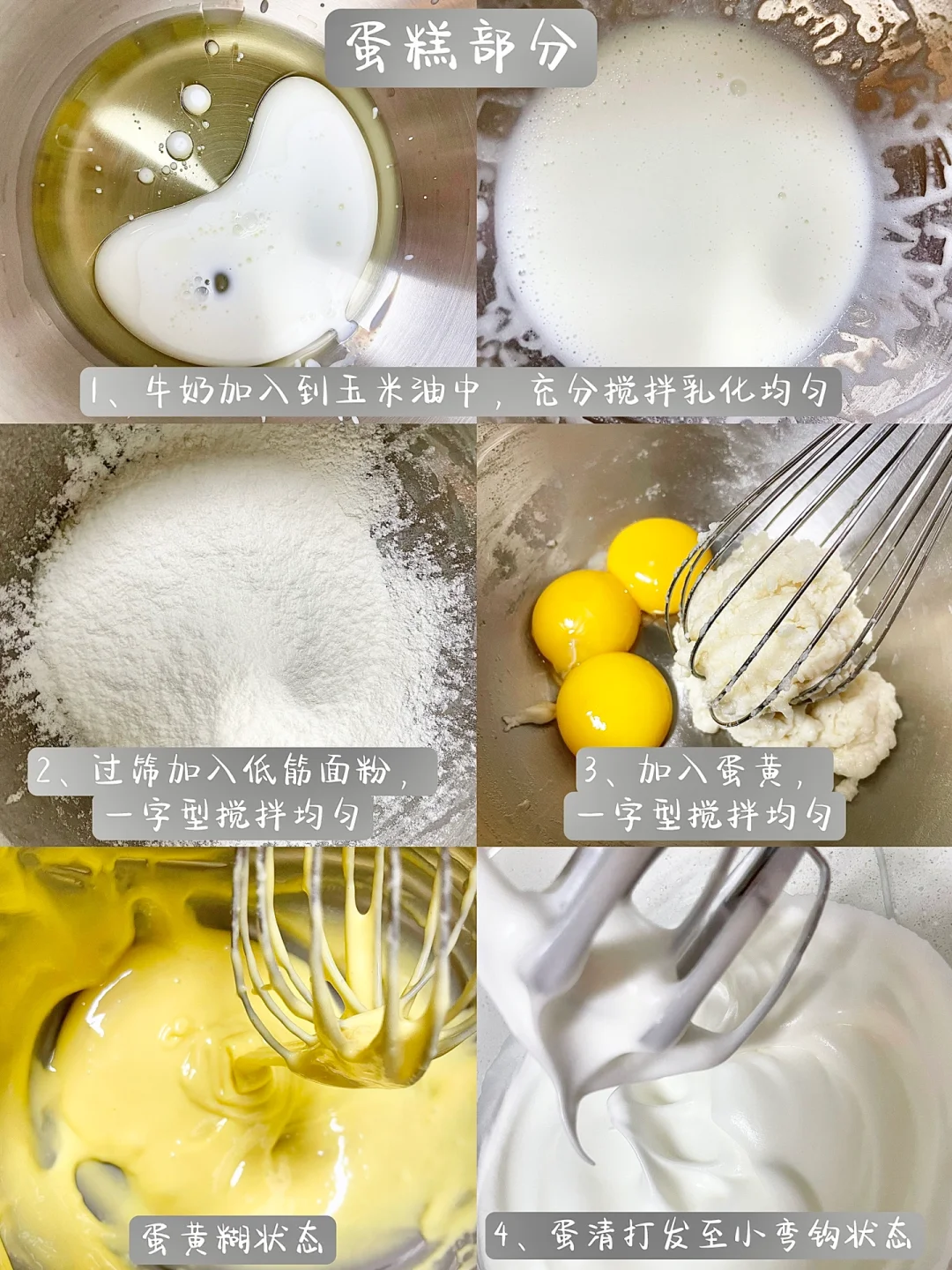 1⃣️牛奶加入到玉米油中,充分搅拌乳化均匀