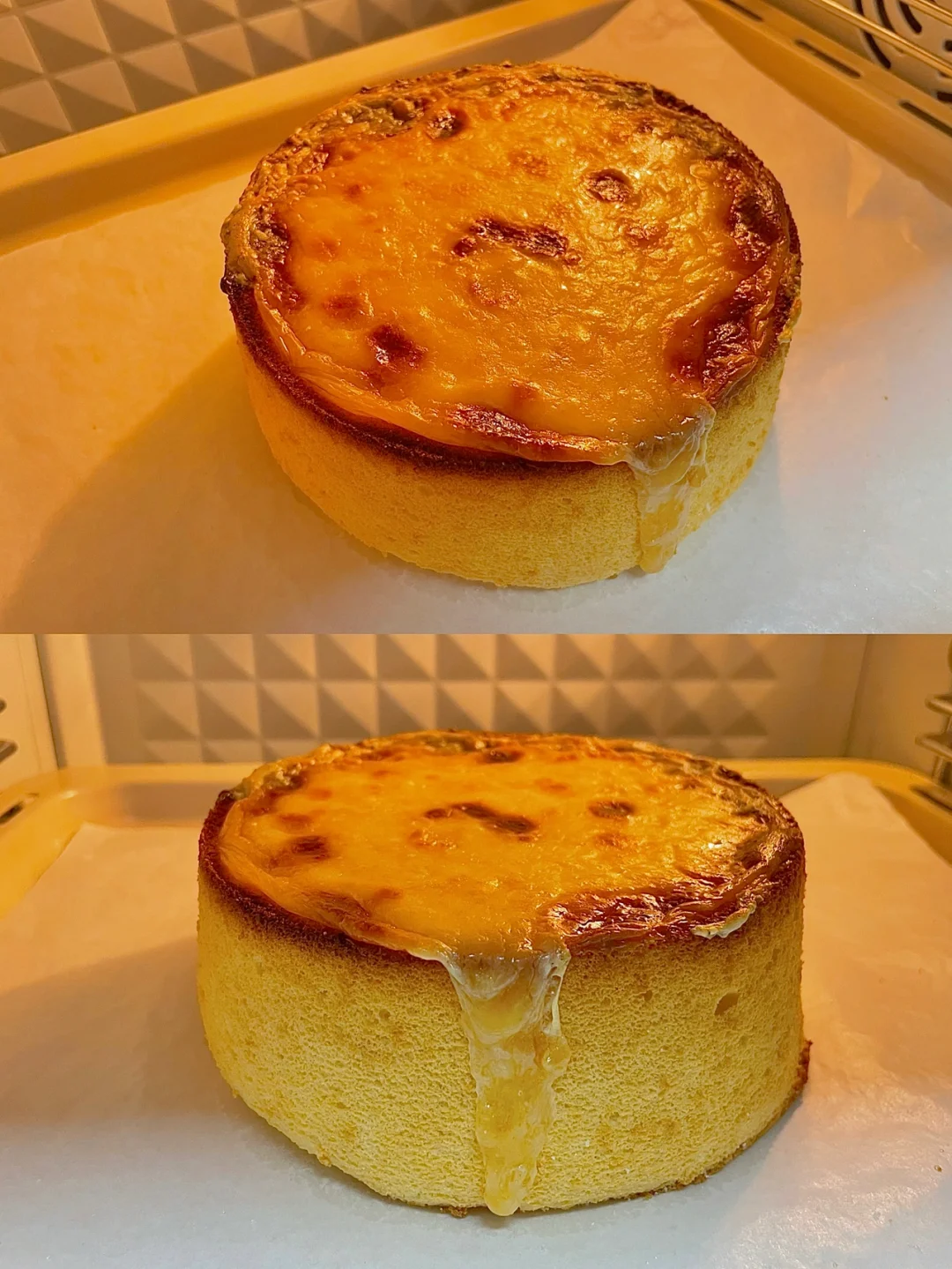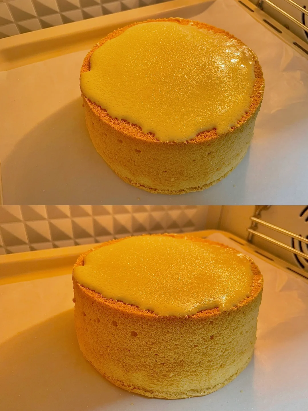 7⃣️烤好后立即从烤箱取出,摔一下震出热气,再倒扣充分晾凉(需要两小时左右),之后再脱模