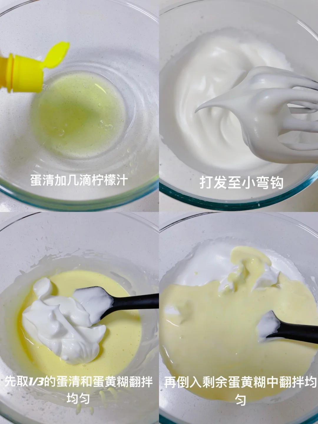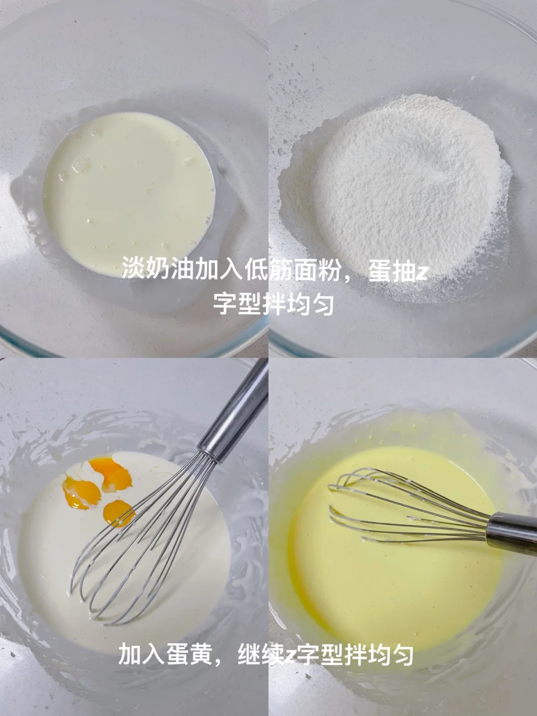 打开用不完的淡奶油很容易变质,做成淡奶油蛋糕。蛋糕口感可以媲美轻乳酪蛋糕,制作方法也较简单,新手也可以一次成功![飞吻R] 配方:低筋面粉70g、淡奶油180g、鸡蛋3个、白糖30g。 制作要点: 1、模具问题:我用的是固底模具,因为是水浴法烤制,如果是活底模具,模具底部需要包上两层锡纸,以免模具进水。 2、尺寸问题:配方是6寸的,8寸的配方✖️2。 3、蛋清打发至出现小弯钩即可,打发过度蛋糕表面容易开裂。 4、烤好的蛋糕放入冰箱冷藏2小时,味道更棒!