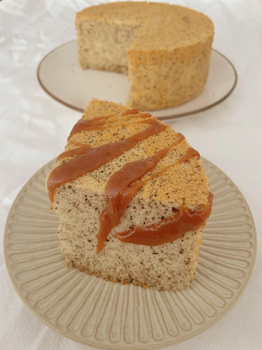 水10克|玉米油30克|低筋面粉50克|鸡蛋3个|细砂糖30克|柠檬汁几滴|焦糖奶油酱36克|红茶粉1克