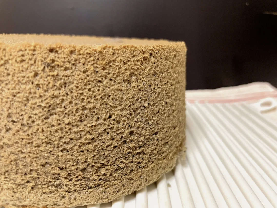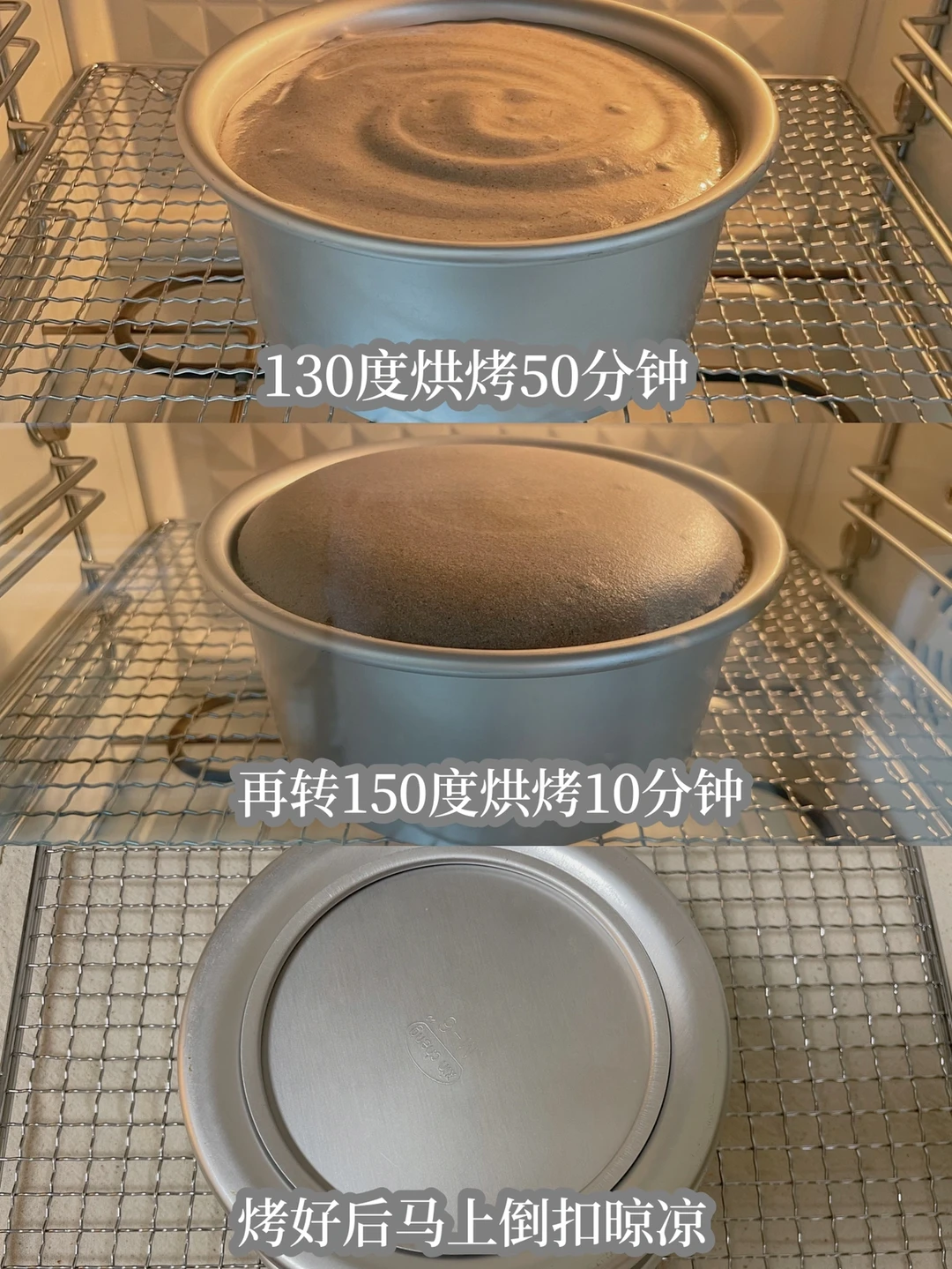 8⃣️烤好后立即从烤箱取出,摔一下震出热气,再倒扣充分晾凉(需要两小时左右),之后再脱模