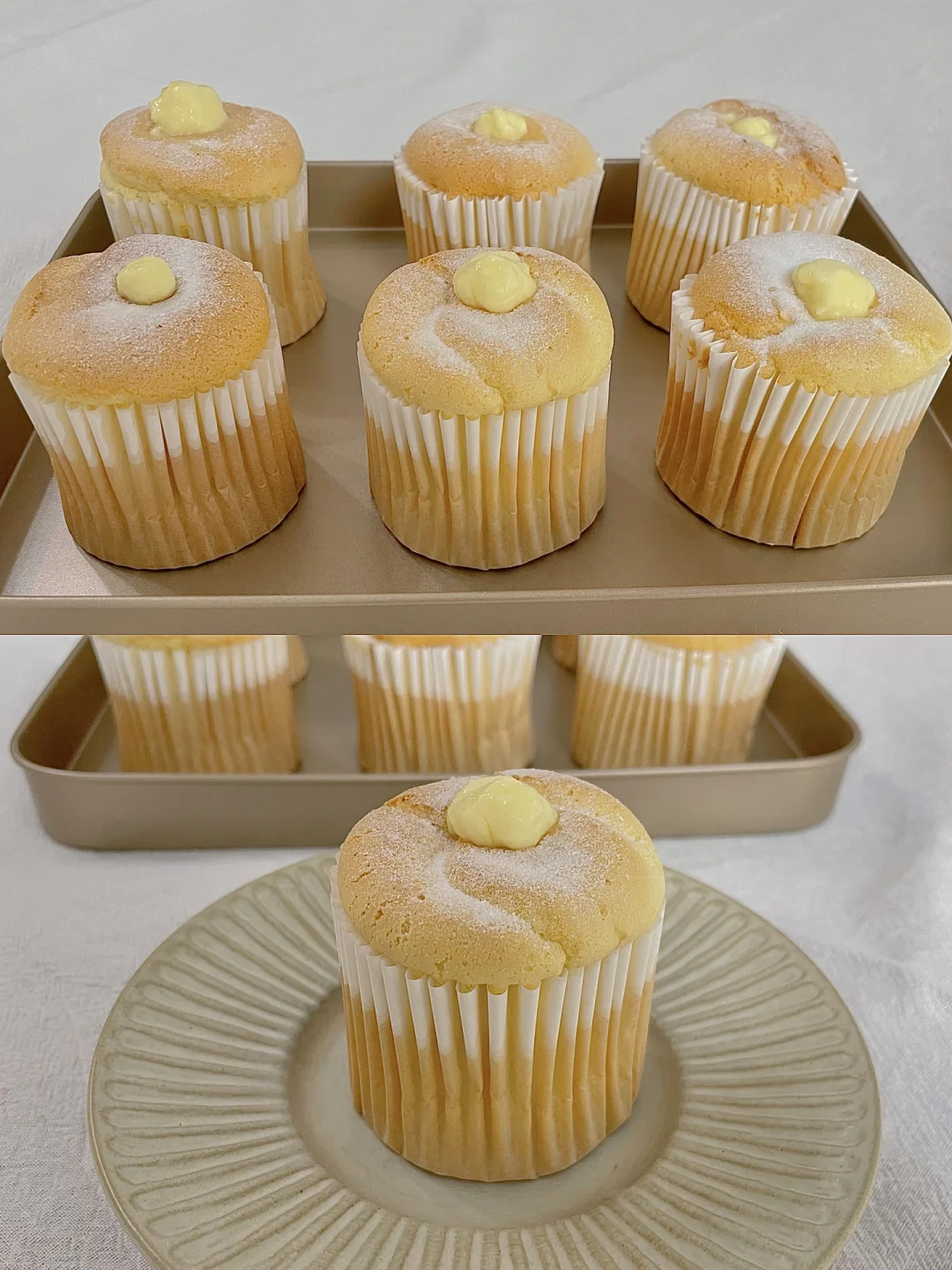 👋今天做了北海道戚风蛋糕,松松软软的戚风蛋糕胚搭配顺滑卡仕达奶油酱,一口爆浆,超好吃❗️