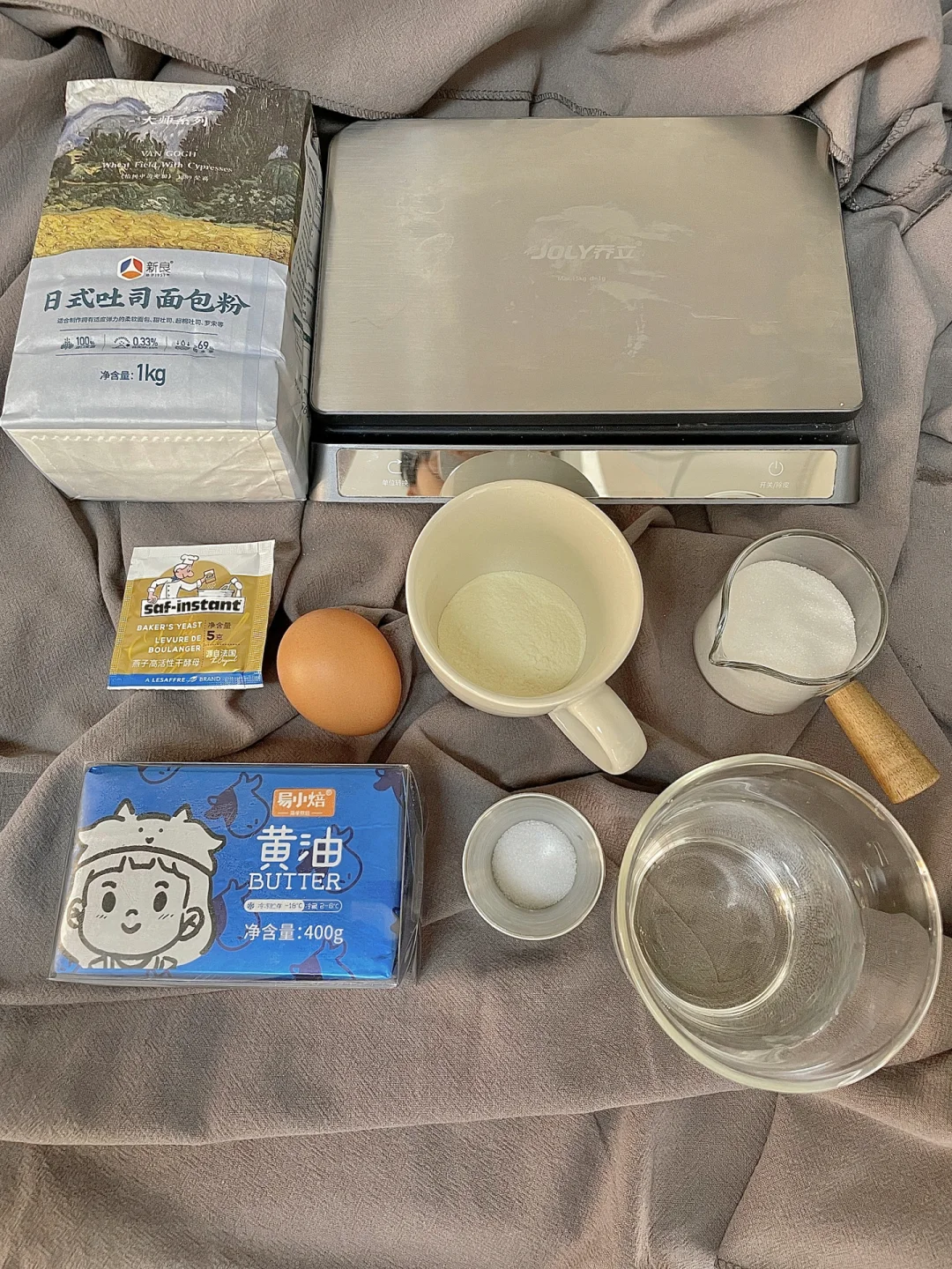 新良大师系列日式吐司面包粉250克|细砂糖30克|奶粉8克|全蛋液25克|水135克|燕子干酵母粉3克|盐3克|易小焙动物黄油25克