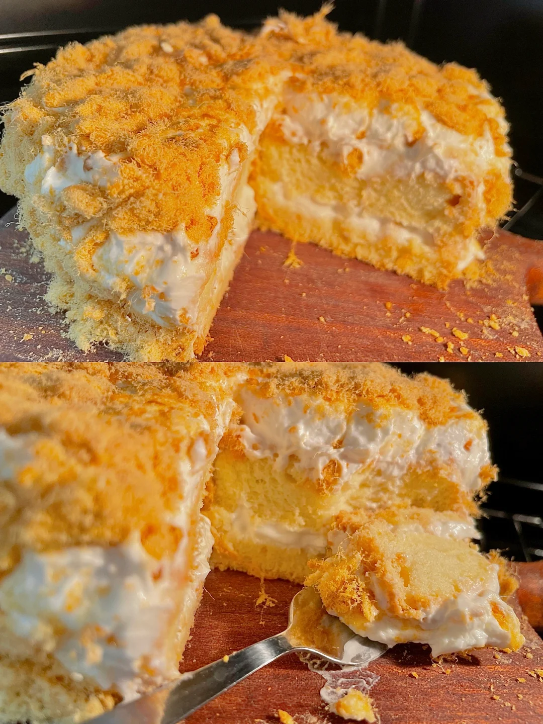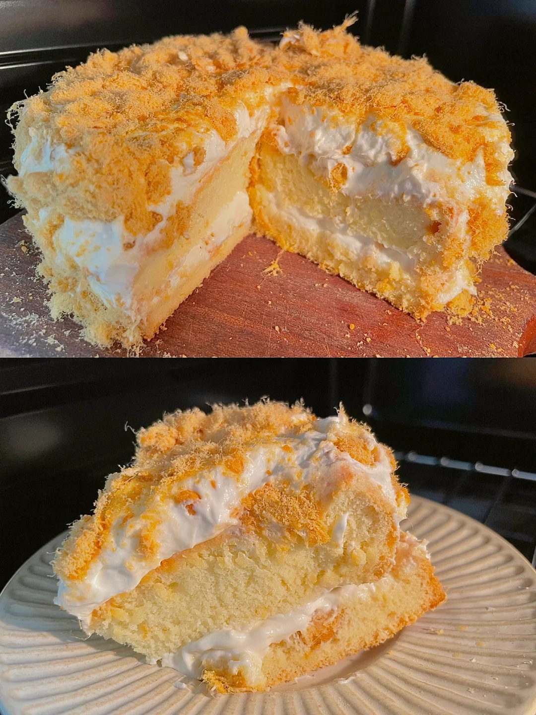 👋今天做了肉松爆浆戚风蛋糕,咸香肉松搭配香甜的沙拉奶油酱,一口爆浆,超好吃❗️