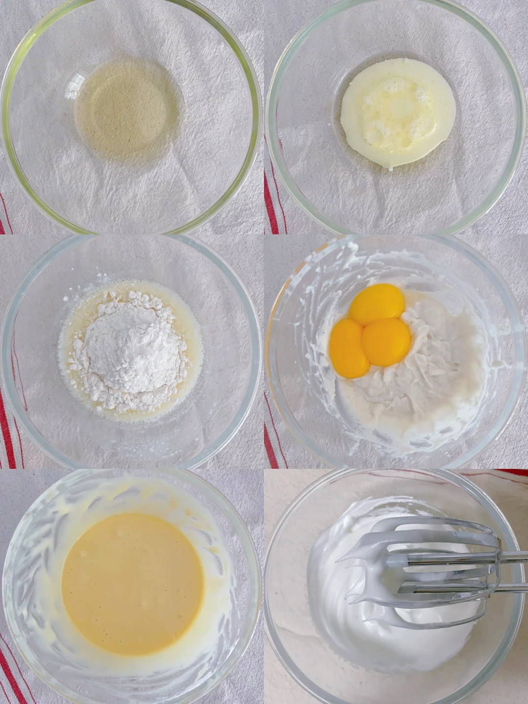 3⃣️分离蛋清蛋黄,面糊中加入蛋黄,一字型搅拌均匀