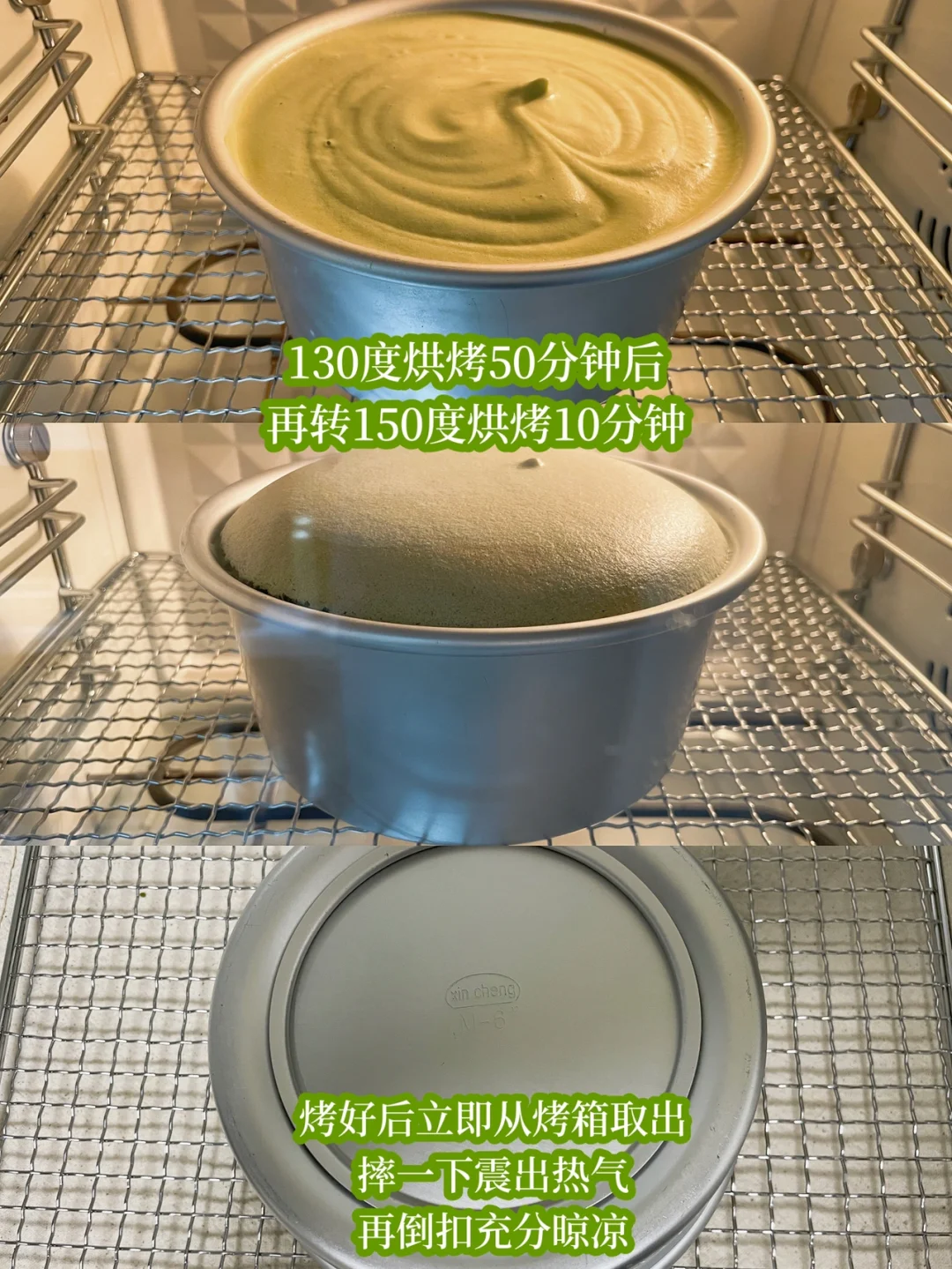 8⃣️烤好后立即从烤箱取出,摔一下震出热气,再倒扣充分晾凉(需要两小时左右),之后再脱模