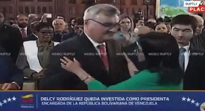 委代总统宣誓就职,中俄大使纷纷到场,送上拥抱和祝福 当地时间1月5日,委内瑞拉原副总统德尔茜·罗德里格斯宣誓就任委内瑞拉代总统,仪式结束后,中国大使第一个向罗德里格斯送上了拥抱和祝福(图1),一旁的俄罗斯大使也同样拥抱了罗德里格斯(图2),并送上了美好祝愿。 中俄大使纷纷到场,对罗德里格斯领导的过渡政府来讲绝对是一笔宝贵财富,尤其是在委内瑞拉遭遇外敌入侵、总统马杜罗被绑、美国还扬言要派兵“接管”的情况下,有中俄这种级别的大国对委内瑞拉的主权和内政表示尊重和支持,将对稳定区域局势起到很大的推进作用。 值得一提的是,美国方面同样对罗德里格斯接权表现出了积极态度,美媒指出,罗德里格斯展现出了跨越反美意识形态鸿沟的可能,特朗普也认为新领导人会乖乖地跟美国合作,但事情真会如他想的那般顺利吗? 和马杜罗一样,罗德里格斯也是坚定的查韦斯主义者,反美的政治立场非常坚定,就算面对强权威胁,也不大可能将国家利益拱手相让。 另外,罗德里格斯的父亲被亲美政府迫害而死,现在对自己有知遇和提携之恩的马杜罗也被美国绑架,所以从个人情感层面出发,罗德里格斯也会站在美国的对立面。 由此可见,美国想要全面“接管”委内瑞拉并不容易,罗德里格斯可能会和美国进行一些有限的利益交换,但那也是基于严峻的现实情况考量,彻底倒向美国的可能性不大。不过,如果特朗普一直得不到想要的东西,很有可能会再度对委内瑞拉出手,将罗德里格斯也抓回美国迫害,毕竟对现在的美国来说,小国的主权他们根本不放在眼里。