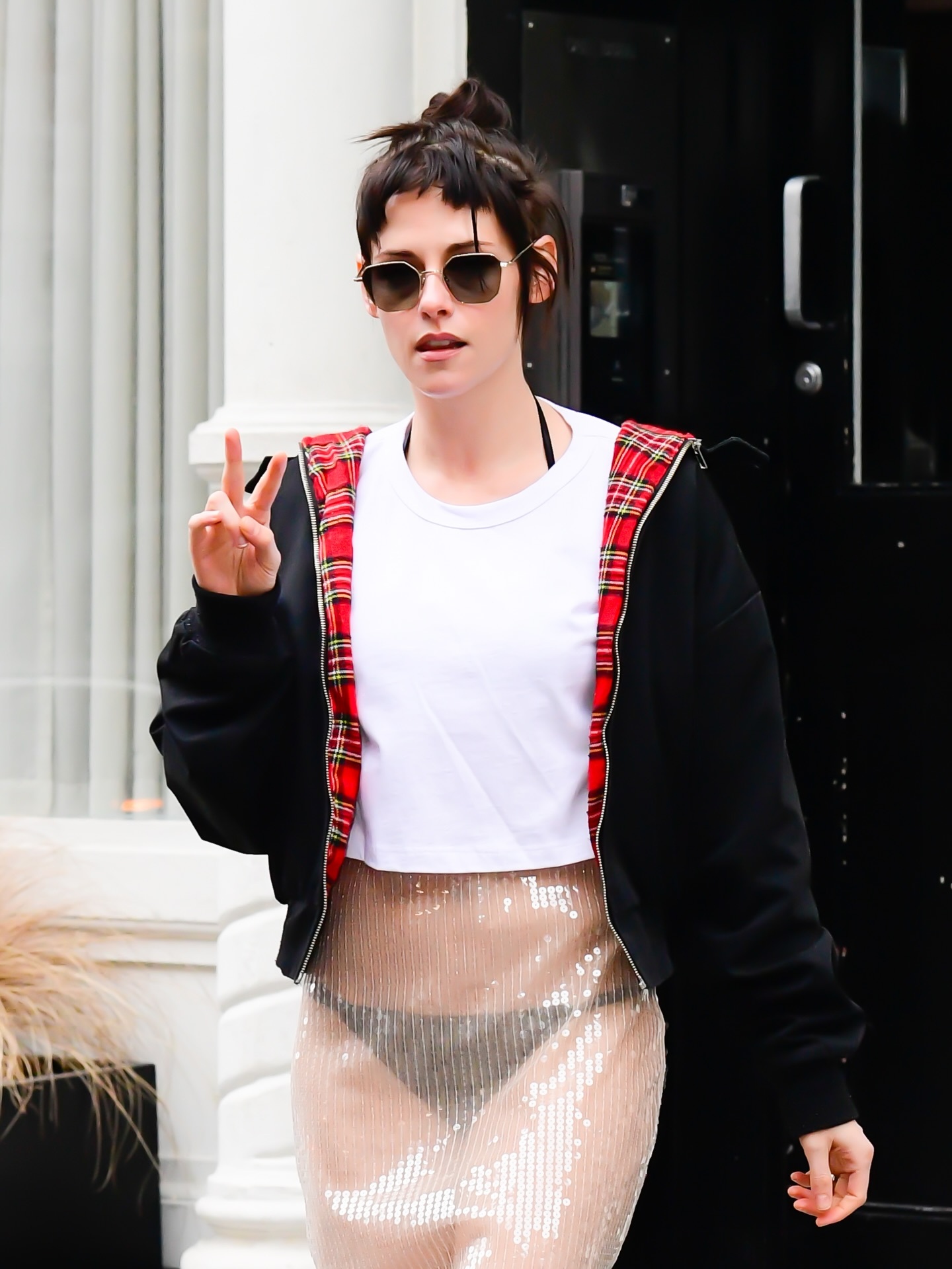 来自KristenStewart的最新街拍Look,现身纽约LateNigh