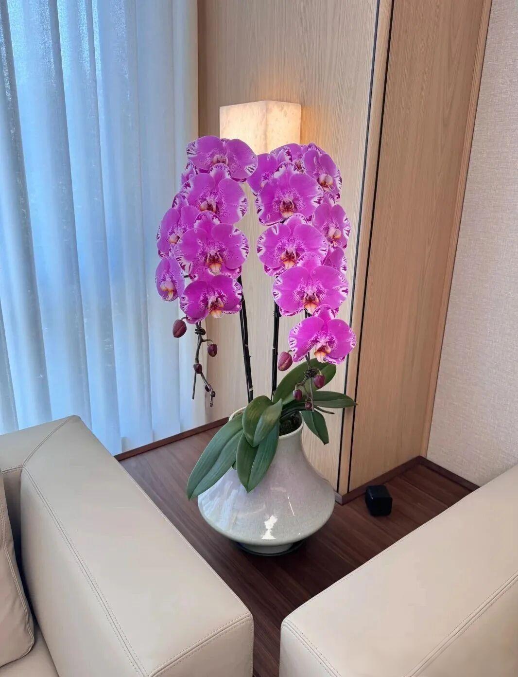 蝴蝶兰之美——藏宝图 蝴蝶兰“藏宝图”是颜值与寓意兼具的优质品种,很值得养护。它的花语满是美好期许,核心是“蕴藏宝藏、财源滚滚”,花瓣上的不规则斑点就像藏宝图的标记,象征财富汇聚,玫粉色的花姿还能传递幸福吉祥的氛围。 养殖方面不用太复杂,关键是模拟温暖湿润的通风环境。光照选朝东或朝北的散射光,夏季遮阴60%-70%,冬季可适当补光;温度控制在20-28℃,夏冬两季做好降温和保暖。浇水遵循“见干见湿”,基质表面干、内部微湿时浇透,别积水溅到叶心。 生长期用蝴蝶兰专用薄肥,每月1-2次,花期前多补点磷钾肥,高温低温时停肥即可,基质选水苔或树皮混合土,1-2年春季换一次盆。 记住不用普通园土、不频繁浇水、不高温低温施肥这三个误区,就能让它健康生长了。