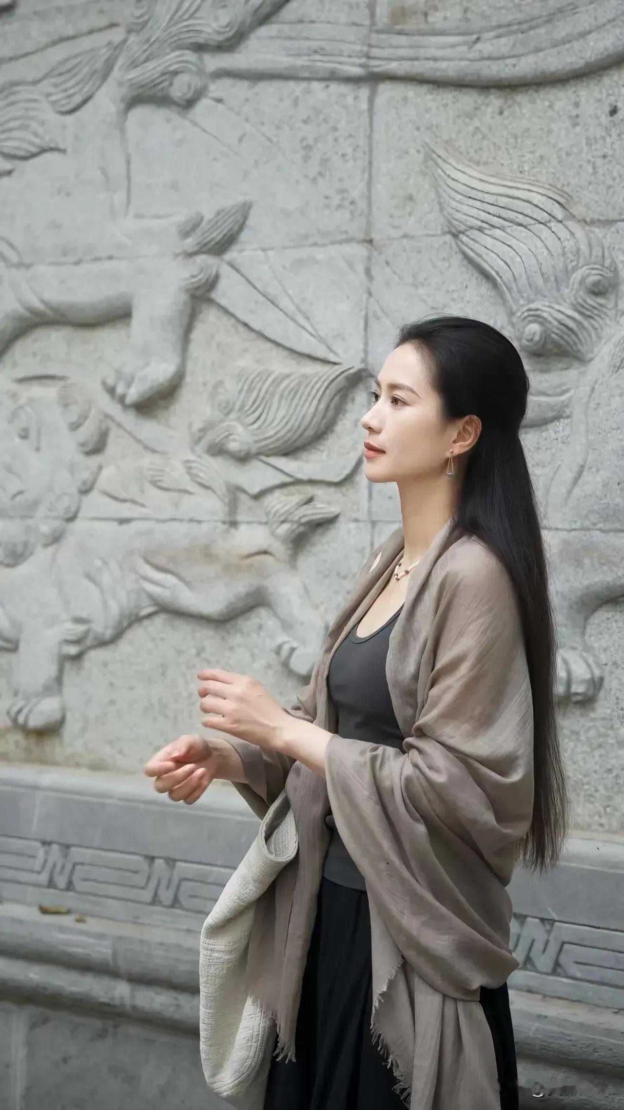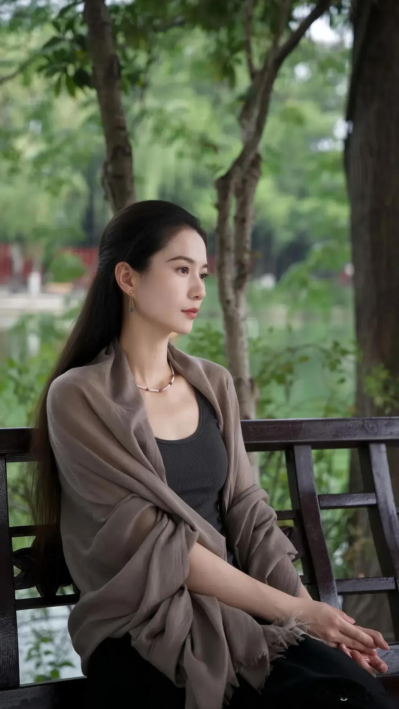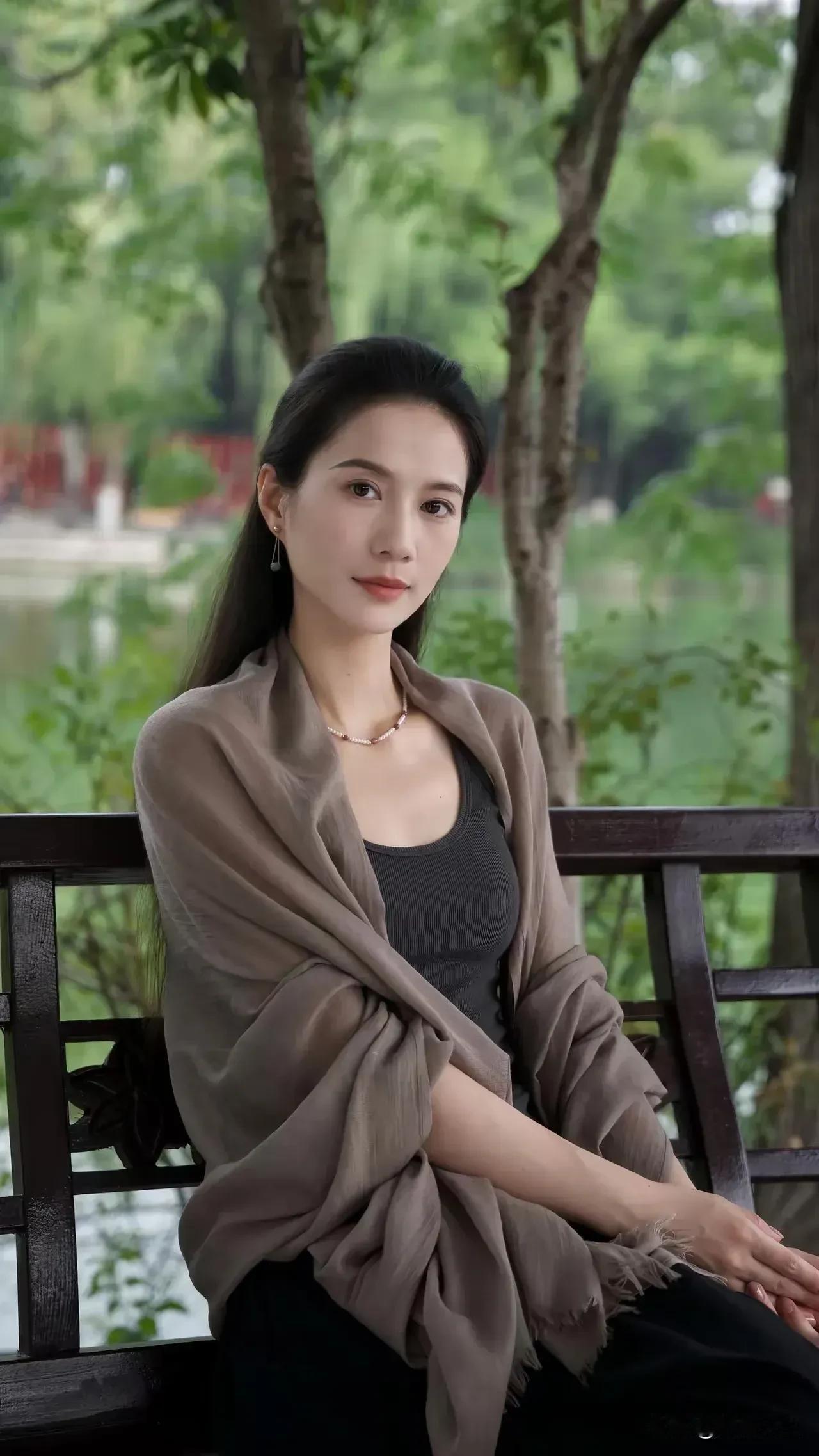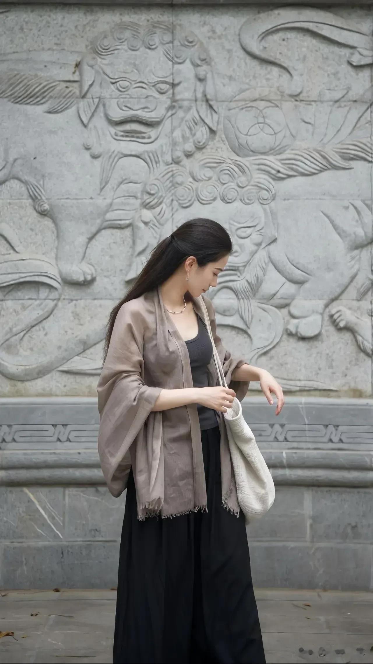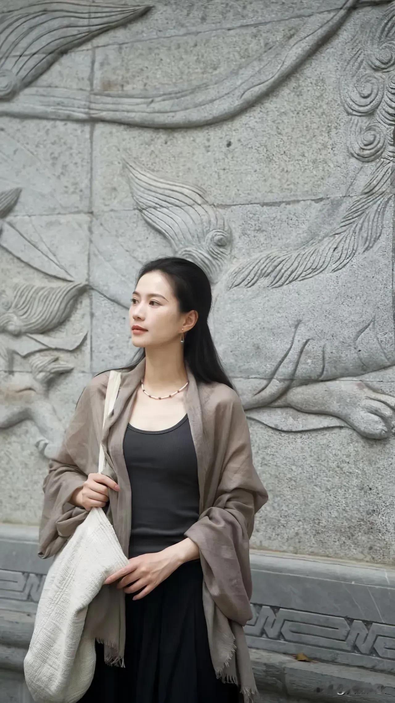 在古镇的石桥上,优雅地坐着,享受宁静的时光。