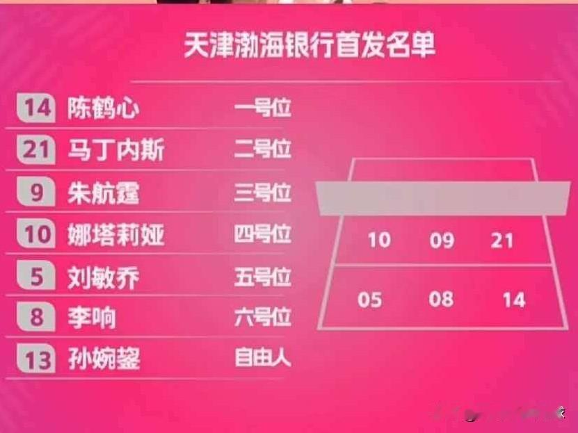 出人意料!河南女排调整阵容,首局以25-16获胜,1-0领先天津女排! 女排联赛常规赛A级第七轮(第一循环最后一轮)赛事中,天津渤海银行在主场对阵河南双汇。 天津队首发阵容为:二传朱航霆,接应李响,主攻娜塔莉娅、陈鹤心,副攻小马丁内斯、刘敏乔,自由人孙婉鋆。 河南队首发阵容为:二传张梓涵,接应段梦可,主攻蔡晓晴、姆拉德诺维奇,副攻黄瑞蕾、李若琦,自由人王思敏。 两队阵容均有变动,天津队除两名外援外,其余皆为年轻队员;河南队则由段梦可首发担任接应,姆拉德诺维奇改打主攻。 第一局,河南队开场便以5-0领先。天津队4-10落后时,主教练陈方用刘美君替换陈鹤心,以稳定一传。中局阶段,河南队16-9大幅领先。最终,河南队出人意料地以25-16先下一城!