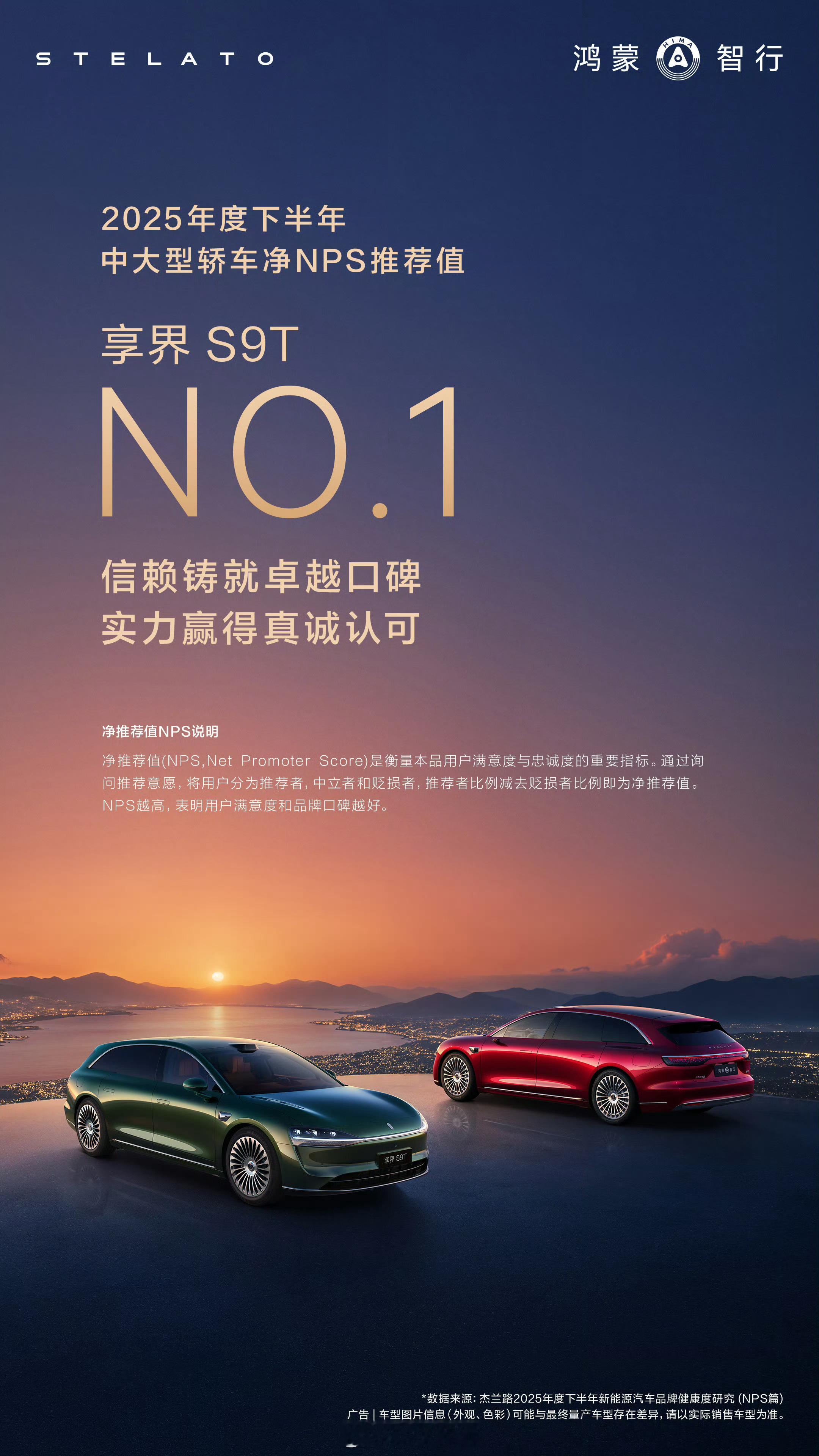 享界S9T拿下25H2同级净NPS推荐值第一,这都是实实在在由消费者投出来的票,很能说明口碑了吧上个月享界品牌交付达到8800台,稳中向好。今年享界还会推出三款新车,包括MPV和硬派SUV,不同的差异需求都会满足。大家有什么期待?