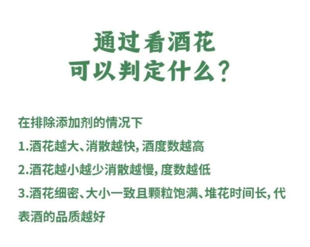 白酒酒花的形态、大小及消散速度,能直观反映酒液关键属性,是品鉴与酿造的重要参考。