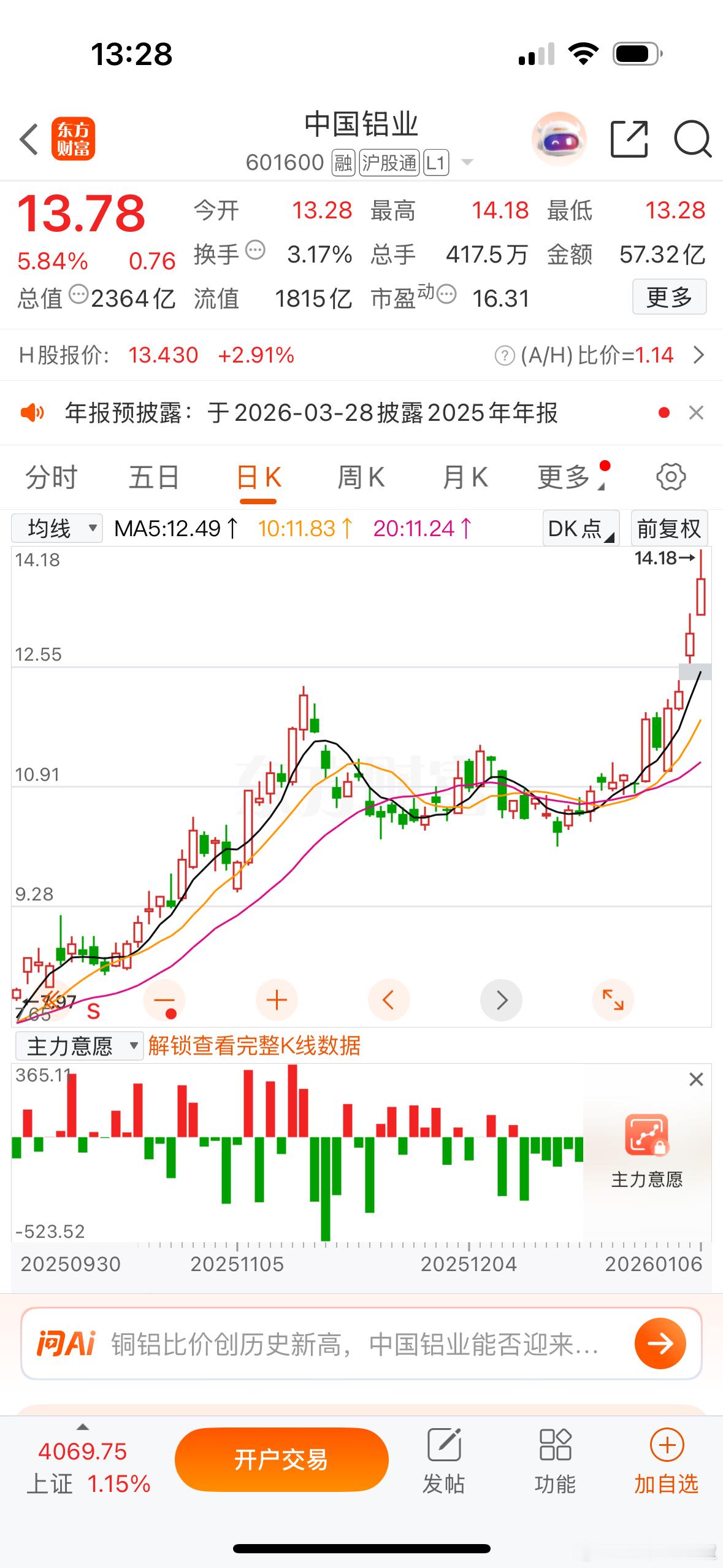 芳华一直说选对板块,你就至少成功了一半!剩下的一半,就交给个股咯!不管短线还是中线思维不要转换太慢,先知先觉吃肉,后知后觉吃面。就像这一波商业航天、有色行情,芳华是不是一直在提示?不管是$飞沃科技 sz301232$ 、$奕东电子 sz301123$ $超捷股份 sz301005$ 还是$中国铝业 sh601600$ 不用心的人芳华总是不想多说什么,用心的爱粉总是最幸福的~
