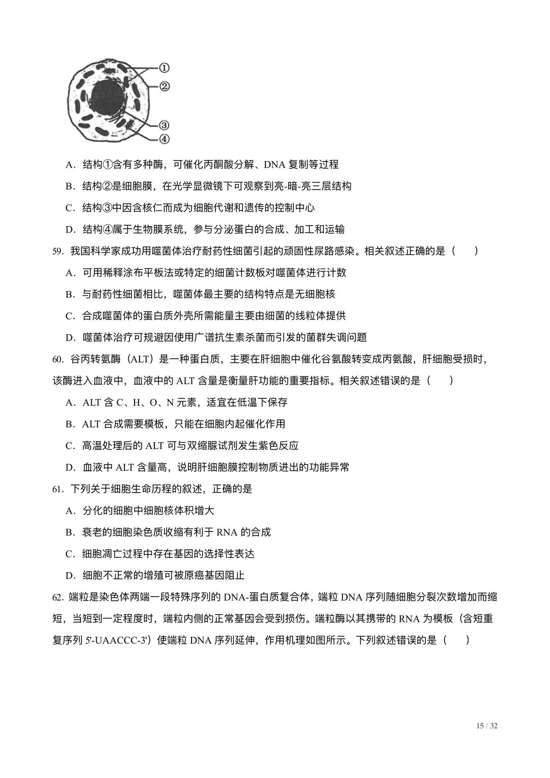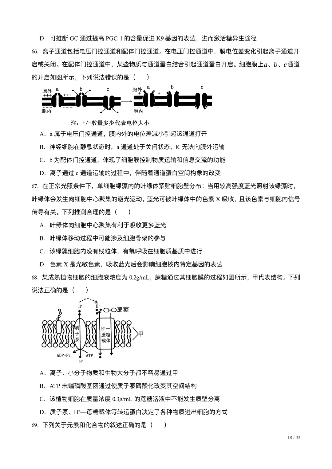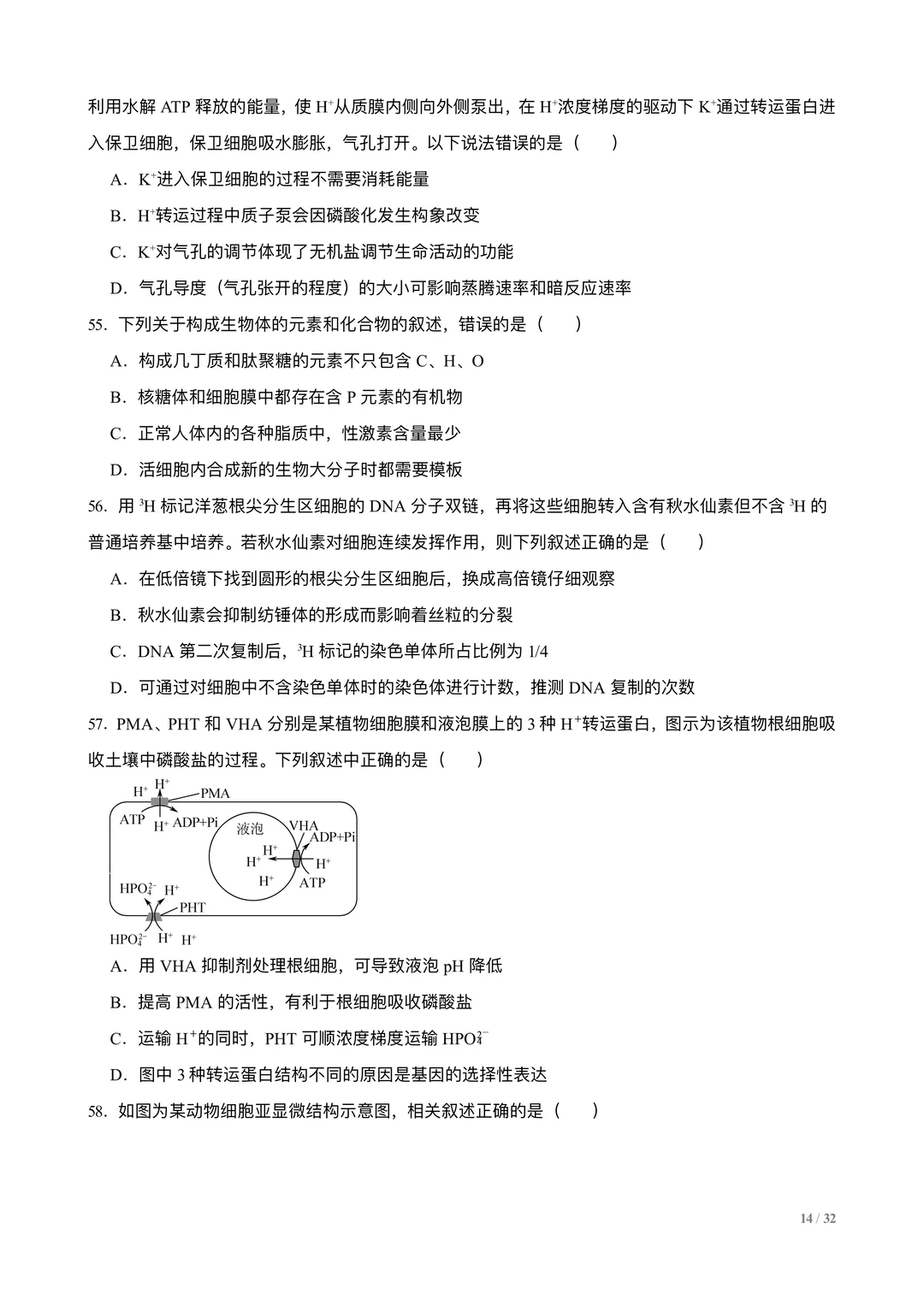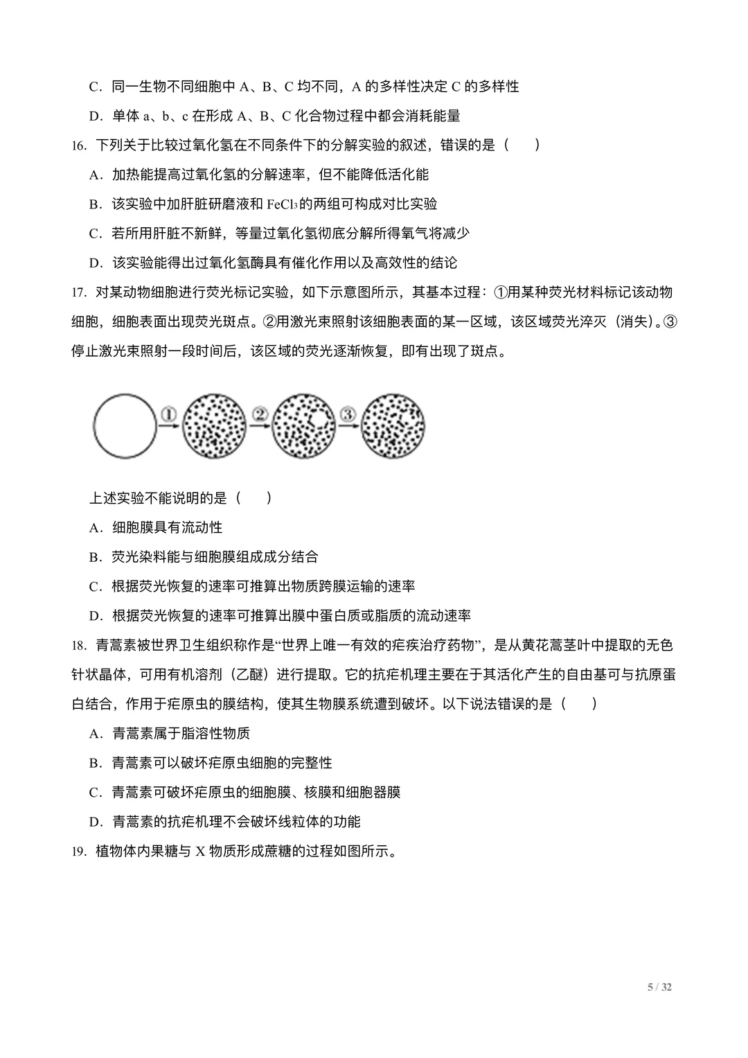 高考生物选择专练100题:分子与细胞
