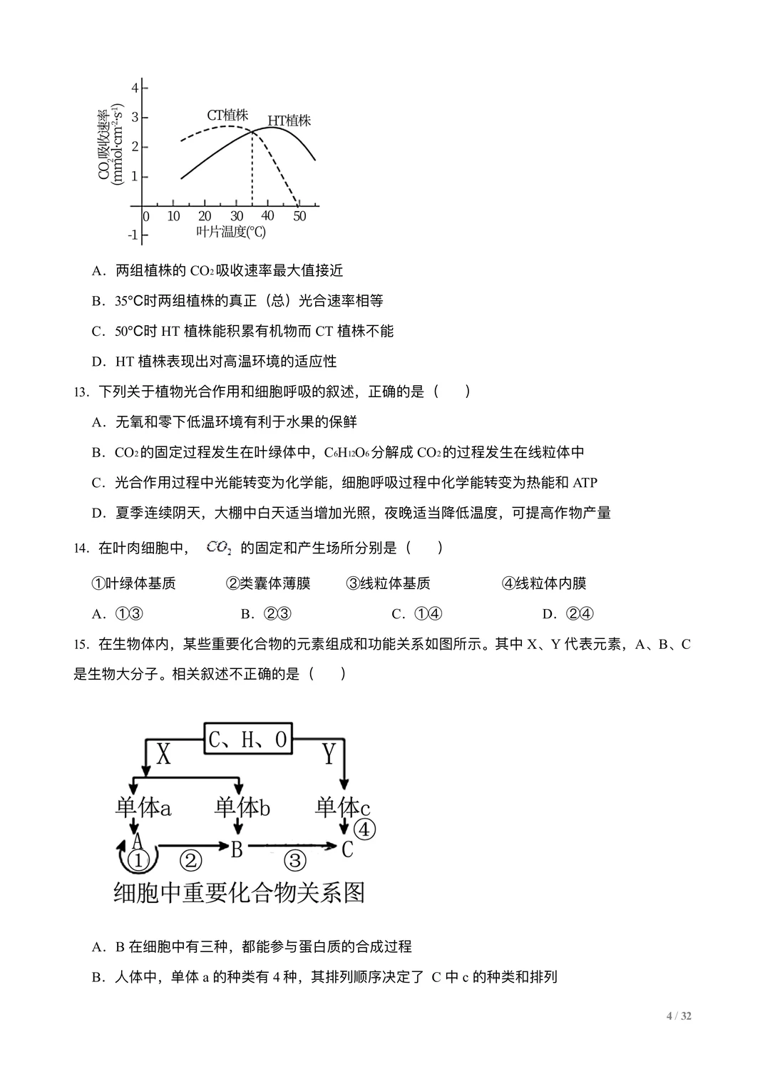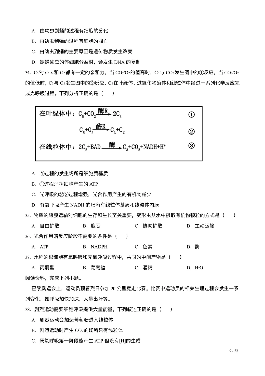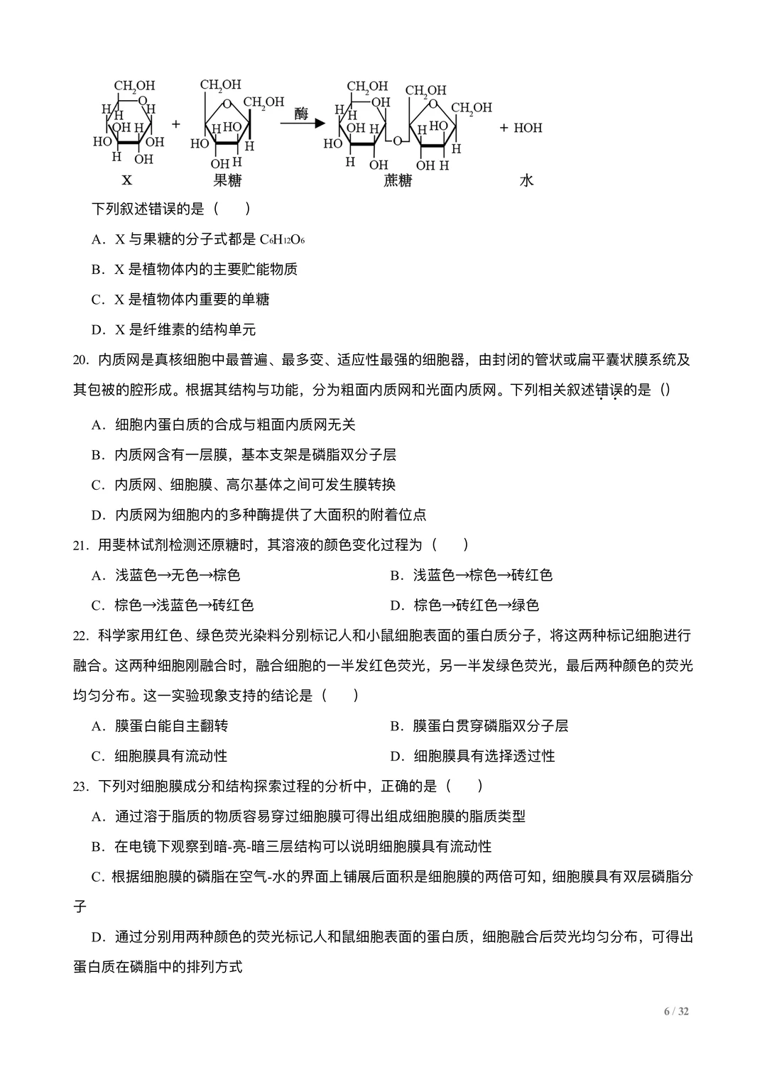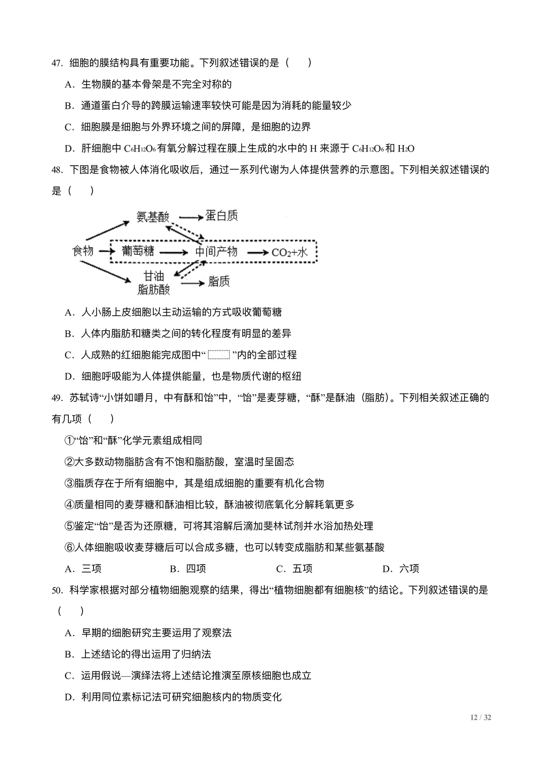 高考生物选择专练100题:分子与细胞