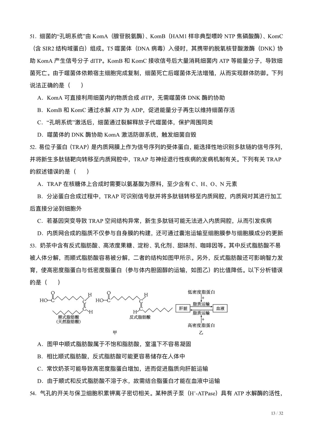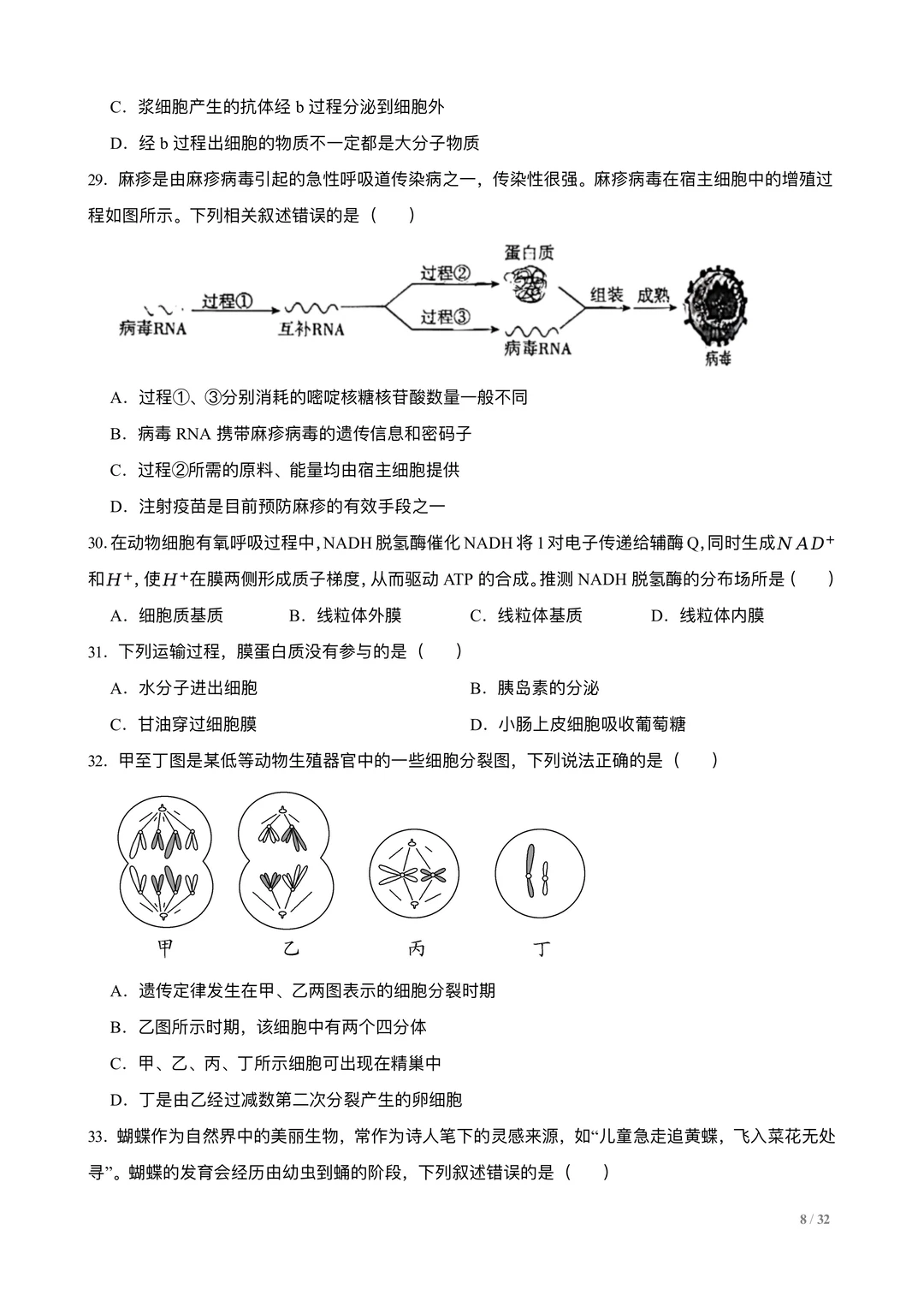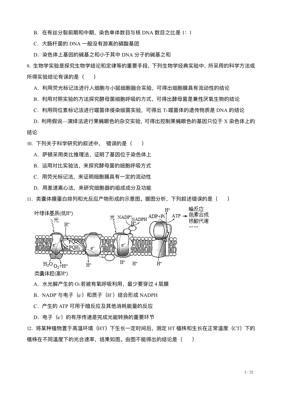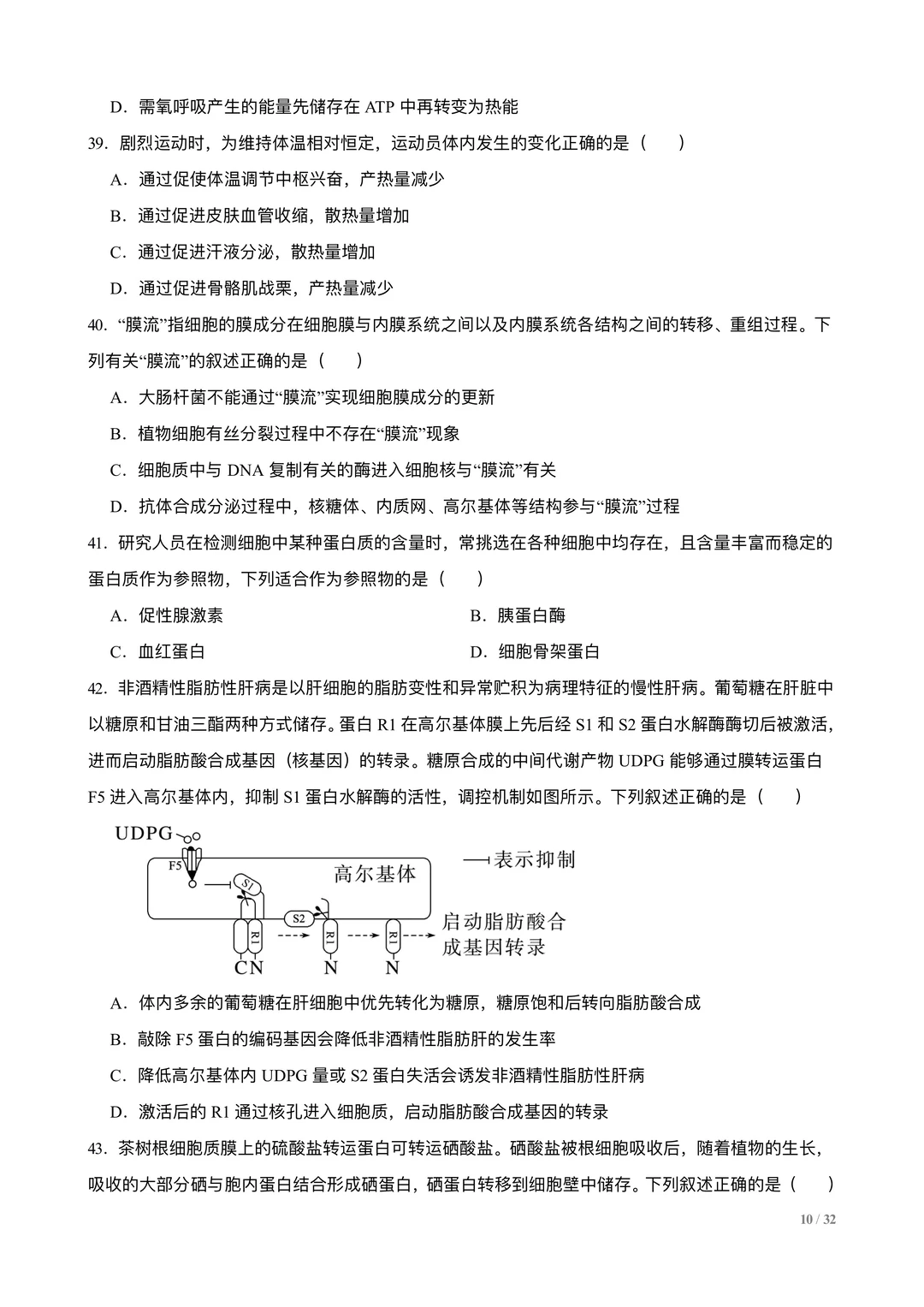 高考生物选择专练100题:分子与细胞