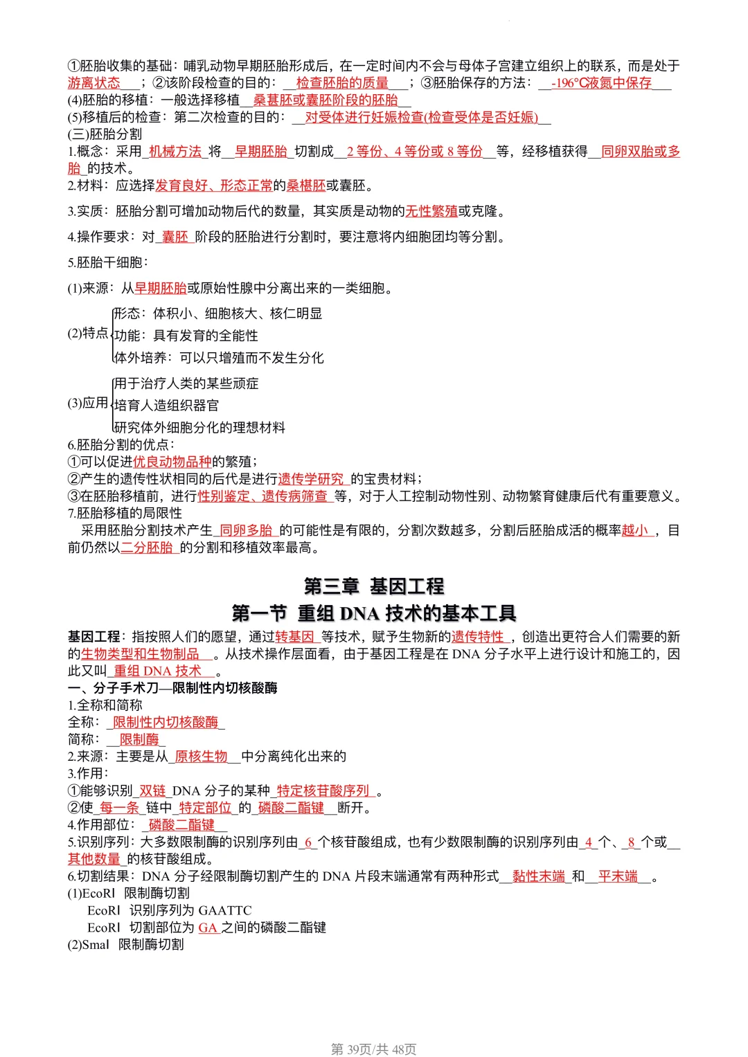 高中生物|选修三知识点(答案版)