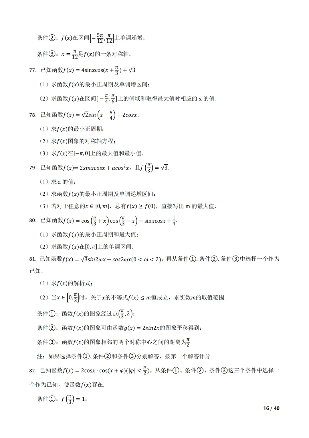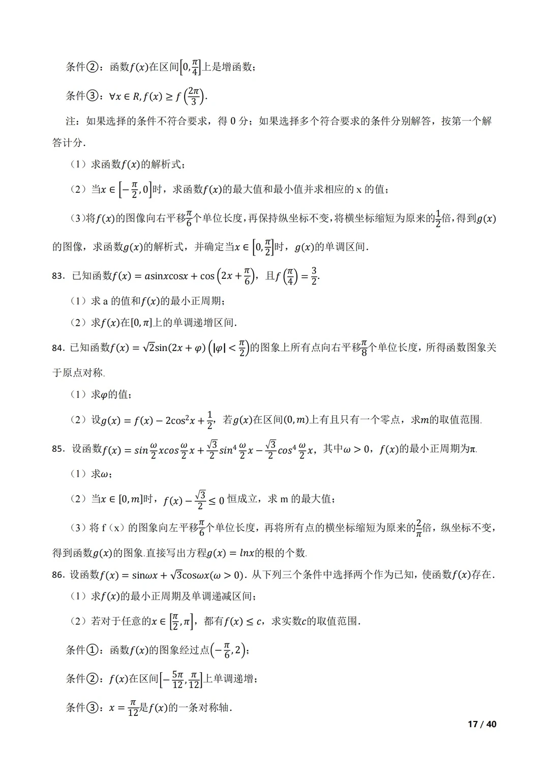 高考数学|三角函数大题冲刺训练