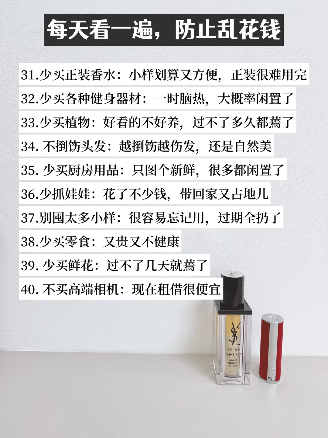 大家好,这里是努力搞钱,存到百万就退休的小猫👋 精简生活后,你就会发现,其实很多的东西,选择适合自己的才是最好的!把钱留着才是王道! 我总结了50个不乱买清单,一起来看看吧!