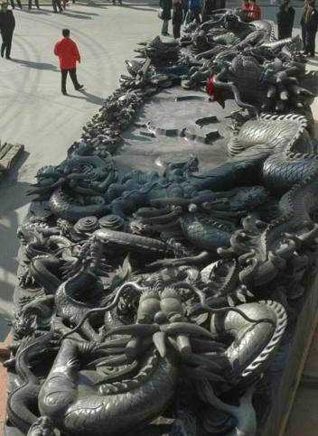 一九九一年,一位河北的村民,在一座山上劈柴,因为太累太热,便席地而坐。没想到一坐下,他就觉得浑身发冷。他往下一看,顿时吓了一跳。 他心中惊疑不定,直觉告诉他,这绝非寻常山石。他起身,绕着石头细细查看,只见它沉实厚重,表面泛着一种隐秘的光泽,像是岁月沉淀下的秘密。他试着坐到旁边的石头上,那股凉意却瞬间消失无踪,仿佛刚才的一切只是幻觉。但那股刺骨的寒意,却真实得让他无法忽视。 他心中涌起一股莫名的冲动,飞奔下山,将这奇事告知了村长。村长听后,也是一脸惊愕,随即组织了几位村民一同上山查看。然而,众人围坐石旁,却无人能识此石真面目,只觉其神秘莫测,反常得近乎诡异。 消息传开,引起了不小的轰动。村民们议论纷纷,有的说是山神显灵,有的说是异宝现世,各种猜测层出不穷。但终究无人能给出确切答案,无奈之下,只得将此事上报给了政府。政府闻讯后,迅速组织了专家团队前来考察,试图揭开这神秘山石的真相。一场关于山石之谜的探索,就此拉开序幕。平凡农夫一屁股坐下,谁曾想,这一坐竟坐出了惊天大秘密!山石之下,暗藏玄机,竟是罕见紫玉石,体量之巨,埋藏山中多年,鲜有人知。 专家闻讯火速赶到,一番细致鉴定,确认无疑。政府迅速行动,组织矿工进山,清土开道,历经月余艰辛,终将这庞然大物完整挖出。重约一百八十吨,通体莹润,色泽深邃,一经现世,便震惊四方,引得无数人侧目。 此紫玉的命运并未就此止步。它被精心雕琢,化作一尊“中华龙腾砚台”,长十二米,龙纹盘绕,气势磅礴,仿佛一条巨龙即将腾空而起,彰显着中华文化的深厚底蕴与磅礴气势。这尊砚台,不仅是一件艺术品,更是文化的传承与象征。 青岛一位有识之士,以重金购得此砚台,并专建厂房以保存,更免费向公众开放,让更多人有机会一睹其风采。此举不仅彰显了企业家的文化情怀与责任担当,更让这尊砚台成为了连接过去与未来的桥梁,让更多人感受到中华文化的魅力与力量。 2009年,该砚台更是荣耀加身,被列入“世界自然遗产”名录,成为中国文化的一张璀璨名片。它不仅见证了中华文明的辉煌历程,更承载着历史的温度,成为连接世界与中国的文化纽带。 平凡农夫无意一坐,却叩开了一段传奇。一块山石,从此不再平凡,它承载着历史的记忆,见证着文明的进步,成为了中华文化中一颗璀璨的明珠。