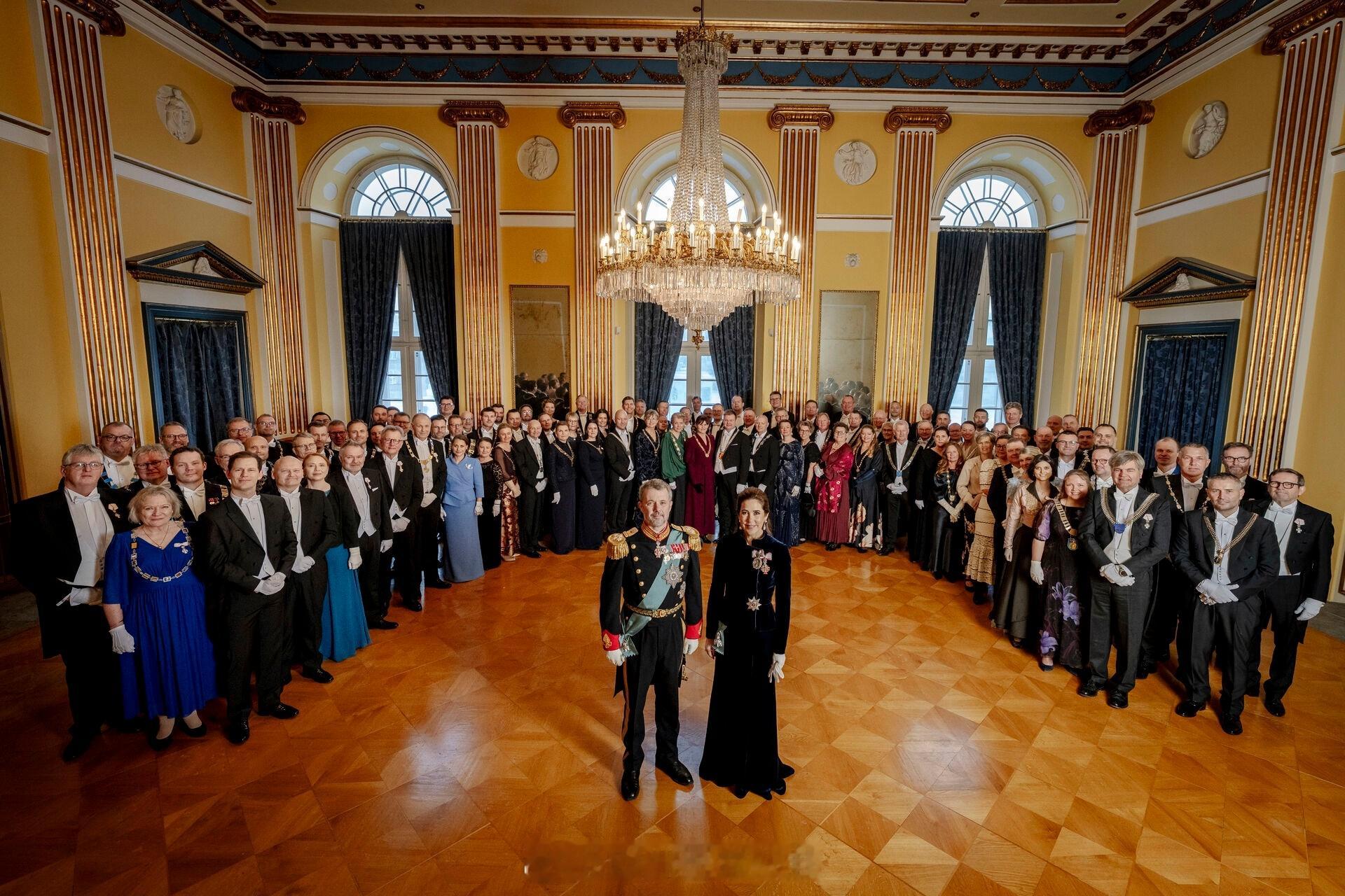 1.5 丹麦国王腓特烈十世和王后玛丽出席第二场新年接待会,长袖天鹅绒礼服就很适合这种场合,来自Jesper Høvring