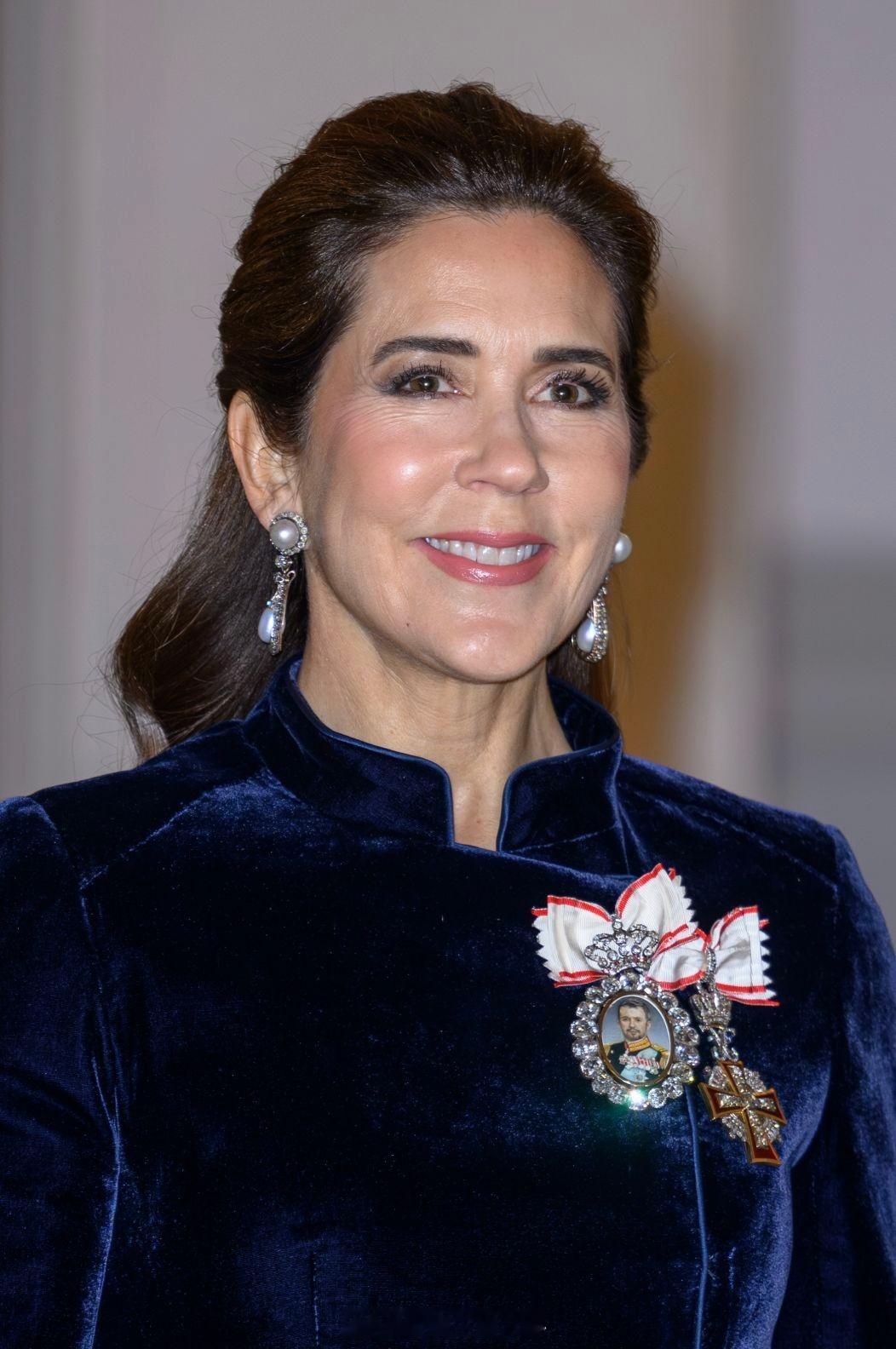 1.5 丹麦国王腓特烈十世和王后玛丽出席第二场新年接待会,长袖天鹅绒礼服就很适合