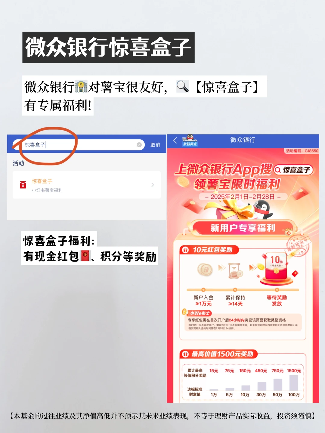 最近还可以上微众银行 App 搜索🔍【惊喜盒子】,有隐藏活动!!可以拿现金红包🧧、积分等奖励