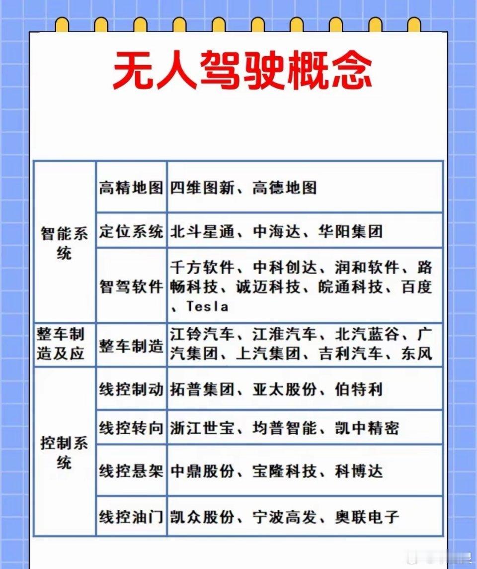 自动驾驶各细分行业龙头有:1.车载摄像头:联创电子(ADAS镜头市占率约18%)