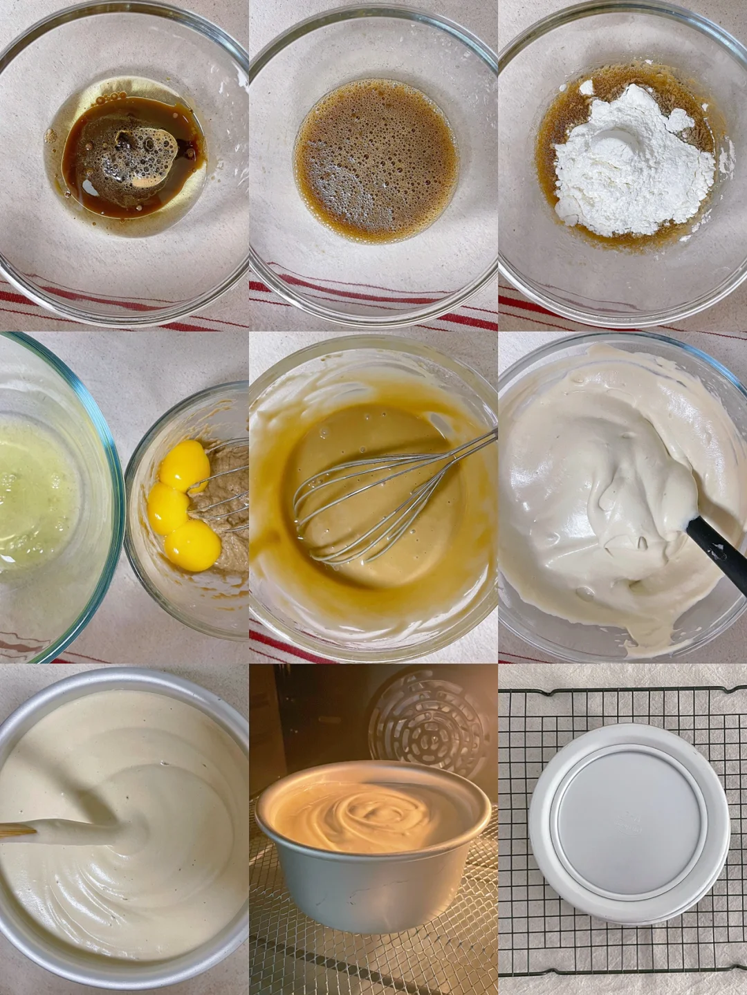7⃣️烤好后立即从烤箱取出,摔一下震出热气,再倒扣充分晾凉(需要两小时左右),之后再脱模