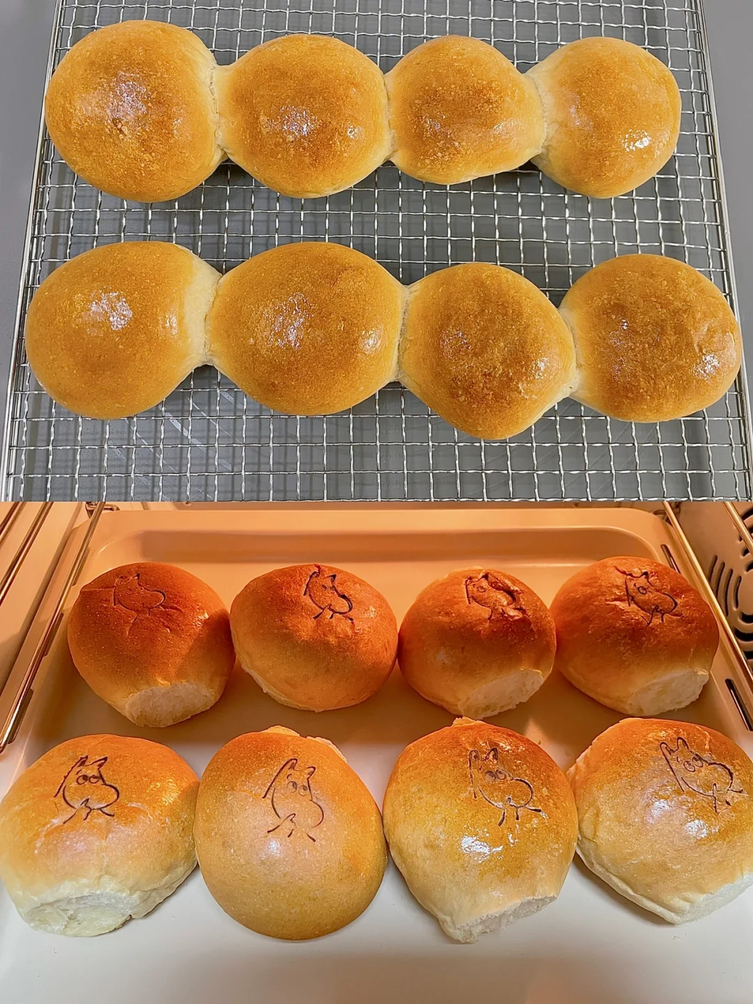 6⃣️烤好的汉堡胚,趁热在表面涂一层黄油,晾至温热放入密封袋中室温保存