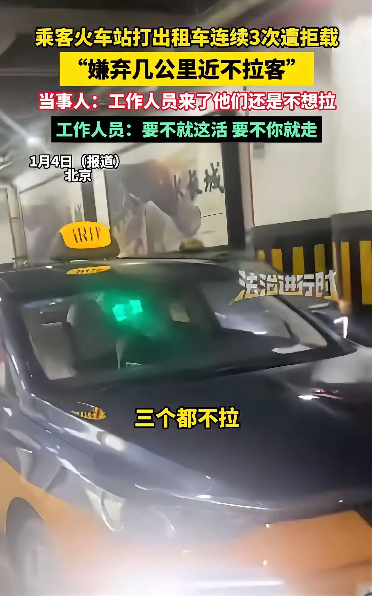离谱!北京火车站出租车拒载短途客,4公里路程三连拒,工作人员发飙才解决 (个人