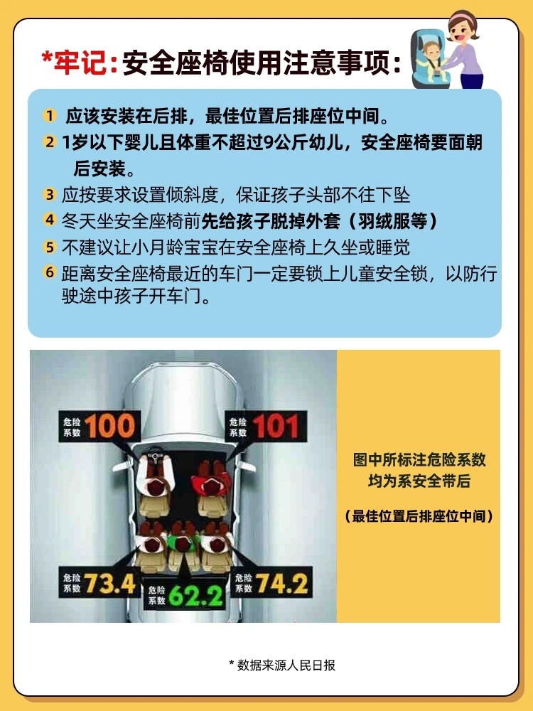 每当看到这样的新闻都很痛心😭福建正式将儿童出行要乘坐安全座椅以立法。为了宝宝的安全,乘车出行时一定要乘坐安全座椅,给宝宝安全上的保障❗️对于新生宝宝还要注意以下事项⚠️