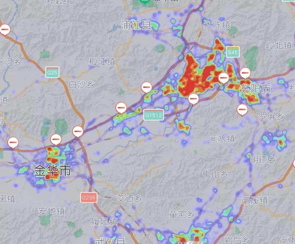 都说金华是小马拉大车 看义乌的热力图,不是说义乌现在常住人口有340万吗。感觉还不止,义乌的热力图比绍兴的还大?说明义乌的人口集中,义乌的夜生活丰富,年轻人多,义乌的电商也发展得不错,但是一到过年义乌的热力图真的很现实,因为义乌基本都是年轻人,过年了都回老家了,以上仅供参考,属个人意见!