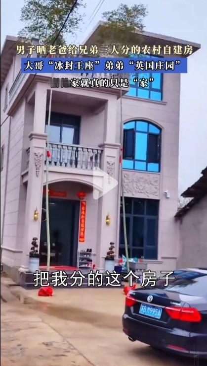 网传视频显示,一男子配话外音说父亲给哥哥和弟弟都分了大别墅,只给自己分了三层小楼,认为父亲处事不公,质问“我是捡来的吗”?这个视频没有拍摄地点,甚至不知道男子是哪个省的,更不知道其他信息,很可能不是真的,而是为了制造话题和流量随意拍了几幢房子配音。 如果此事是真的,也说明男子父亲太有钱了,而且还能拿到这么大地皮给儿子分别盖别墅。即使不同的别墅有区别,二儿子的别墅显得比哥哥和弟弟小一些,但也远超一般家庭,这不是叫屈而是炫富。通常在有三个同性别孩子的家庭中,老大往往会受到宠爱,老小通常会受到溺爱,只有老二才会感觉到被忽略了。