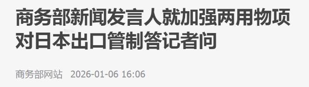 中方耐心耗尽,终于对日祭出杀招!在1月6日的商务部新闻发布会上,我国商务部发言人郑重声明:“中方决定禁止所有两用物项向日本军事用途、军事用途,以及一切有助于提升日本军事实力的其他最终用户用途出口。” 很多人把这则声明解读成单纯的外交反制,其实格局小了。这更像是一记精准的供应链“点穴手”,没跟日本纠结于口头争论,直接戳中了它藏在军工扩张背后的最大软肋。 日本这些年一门心思要扩军,2025年把军费抬到了GDP的2.5%,还喊着要搞“对敌基地攻击能力”,又是升级F-15J战机,又是研发高超音速导弹,甚至花大价钱买美国的“战斧”巡航导弹。 可它偏偏没算明白,自己的军工体系早就被中国的两用物项卡了脖子。就说导弹制导系统和战机发动机里的中重稀土,日本92%的进口都来自中国,少了这些材料,再先进的武器图纸也只能是废纸一张。 禁令一落地,防卫省那些雄心勃勃的项目直接掉了链子,F-15J升级因为缺特种高温合金被迫停工,原计划2026年部署的高超音速导弹,光因为铼钨合金耐热涂层断供,就得推迟到2028年才能见天日。 这波禁令的影响还顺着供应链往下串,把日本的民用高端制造也拖进了泥潭。很多人不知道,两用物项从来不是军工的专属,像镓、锗这些被管制的材料,还是半导体产业的命根子。 日本信越化学80%的镓化合物原料都来自中国河南的冶炼厂,SUMCO生产锗晶圆每月得从云南运上百吨粗锗。 现在供应一断,九州岛的芯片封测企业开始批量违约,半导体设备生产线因为缺锗基光学元件没法调试,有机构估算半年内行业损失就得超千亿日元,还得拖累日本GDP增速0.3个百分点。 汽车行业也没能幸免。丰田一直在押注的固态电池研发,因为相关技术授权受限加上铟等关键元件短缺,直接陷入停滞,原本规划的新能源汽车量产计划只能重新调整。就连不太起眼的氧化锆产业,日本厂商也栽了跟头。 全球93%的氧化钇产能都在中国,而这种材料是高端氧化锆的核心原料,日本的DKKK、东曹这些行业龙头,因为拿不到中国的氧化钇,生产已经开始受影响。 要知道,氧化锆可是广泛用在医疗植入物、燃料电池这些高端领域,后续的连锁反应还没完全显现。 日本不是没想过自救,可供应链重构这事儿,哪是说干就能干成的。三菱UFJ的研究报告早就算过,要是把在华的高端制造产业链迁回日本,得花120万亿日元,相当于日本2024年GDP的20%,而且至少要5年才能完成布局。 想转移到东南亚?那边基础设施跟不上,也找不到能生产军工标准高精度零部件的技术工人。就算日本紧急拨款2000亿日元搞技术自研,可环保政策限制和技术瓶颈摆在那儿,北海道的稀土精炼试点工厂初期产能只能满足国内需求的8%,根本解不了近渴。 说到底,中方这步棋不是突然发难,而是被日本的步步紧逼逼出来的。2025年11月日本首相高市早苗在国会公然炒作“台海有事关乎日本存亡”,12月就通过9.35万亿日元的国防预算案,明着把矛头对准中国。 这两个多月里,中方给足了沟通空间,可日本根本不领情。现在的禁令,本质上是用国际通行的出口管制规则,给日本的军事扩张踩刹车。 这事儿也给所有国家提了个醒,全球供应链早就你中有我我中有你,想靠穷兵黩武搞扩张,就得先掂量掂量自己的供应链能不能扛住。日本总想着挣脱战后体制束缚,却没看清自己的发展根基早就和全球产业链深度绑定,尤其是对中国的材料供给依赖。 这次禁令与其说是中方的“杀招”,不如说是给日本的一记清醒剂:军事野心再大,也得有扎实的供应链托底,否则终究是空中楼阁。