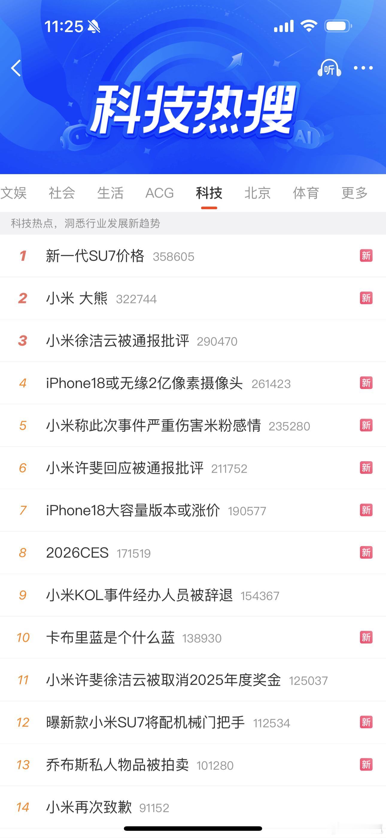 小米简直就是一个流量黑洞,来势汹汹,摧枯拉朽,可以吞噬一切。友商营销团队看着满屏的小米热搜,无辜又无助,仿佛日本动作电影里那个无能的丈夫小米 大熊小米再次致歉新一代SU7价格小米徐洁云被通报批评小米称此次事件严重伤害米粉感情小米许斐徐洁云被取消2025年度奖金