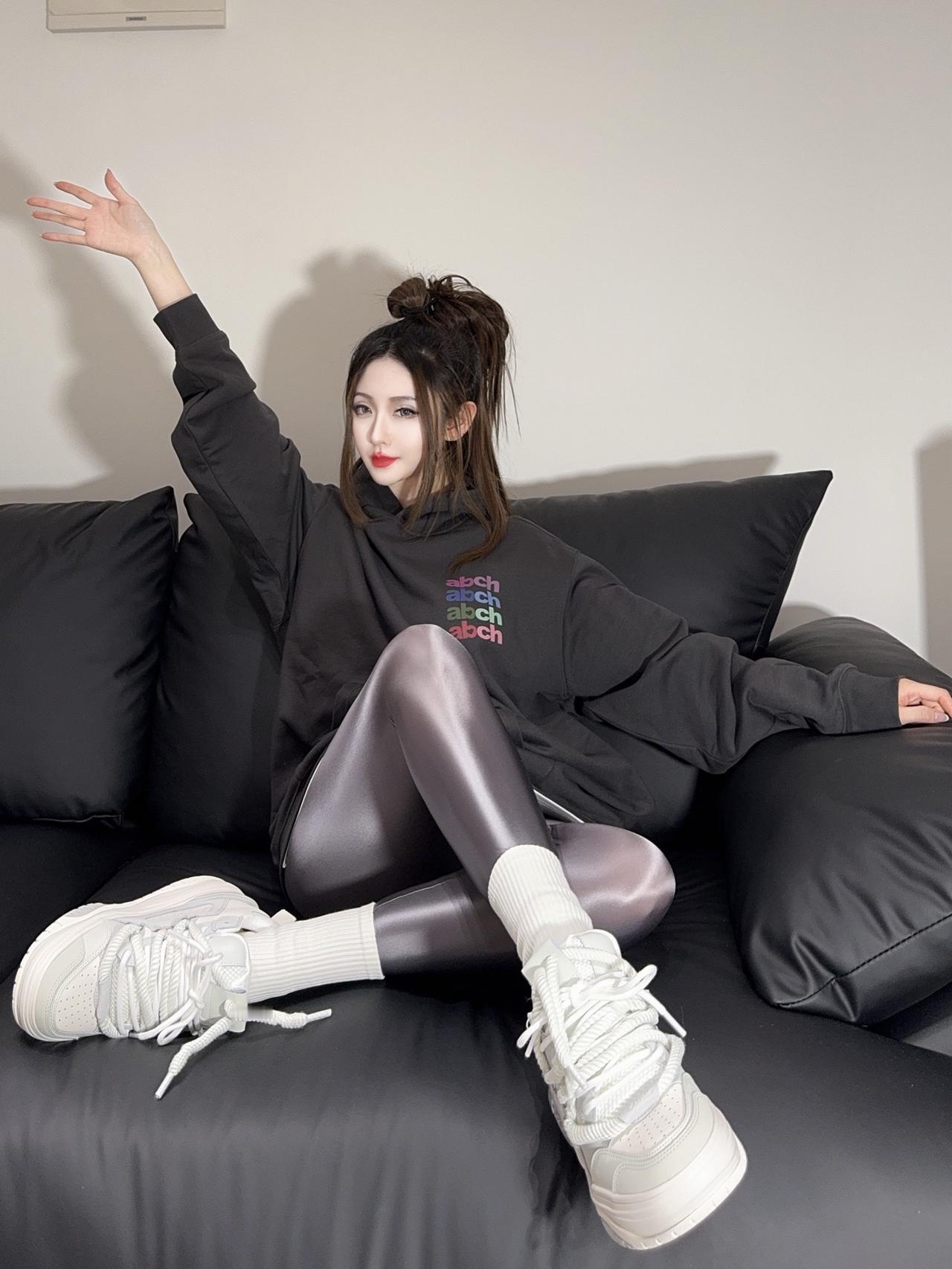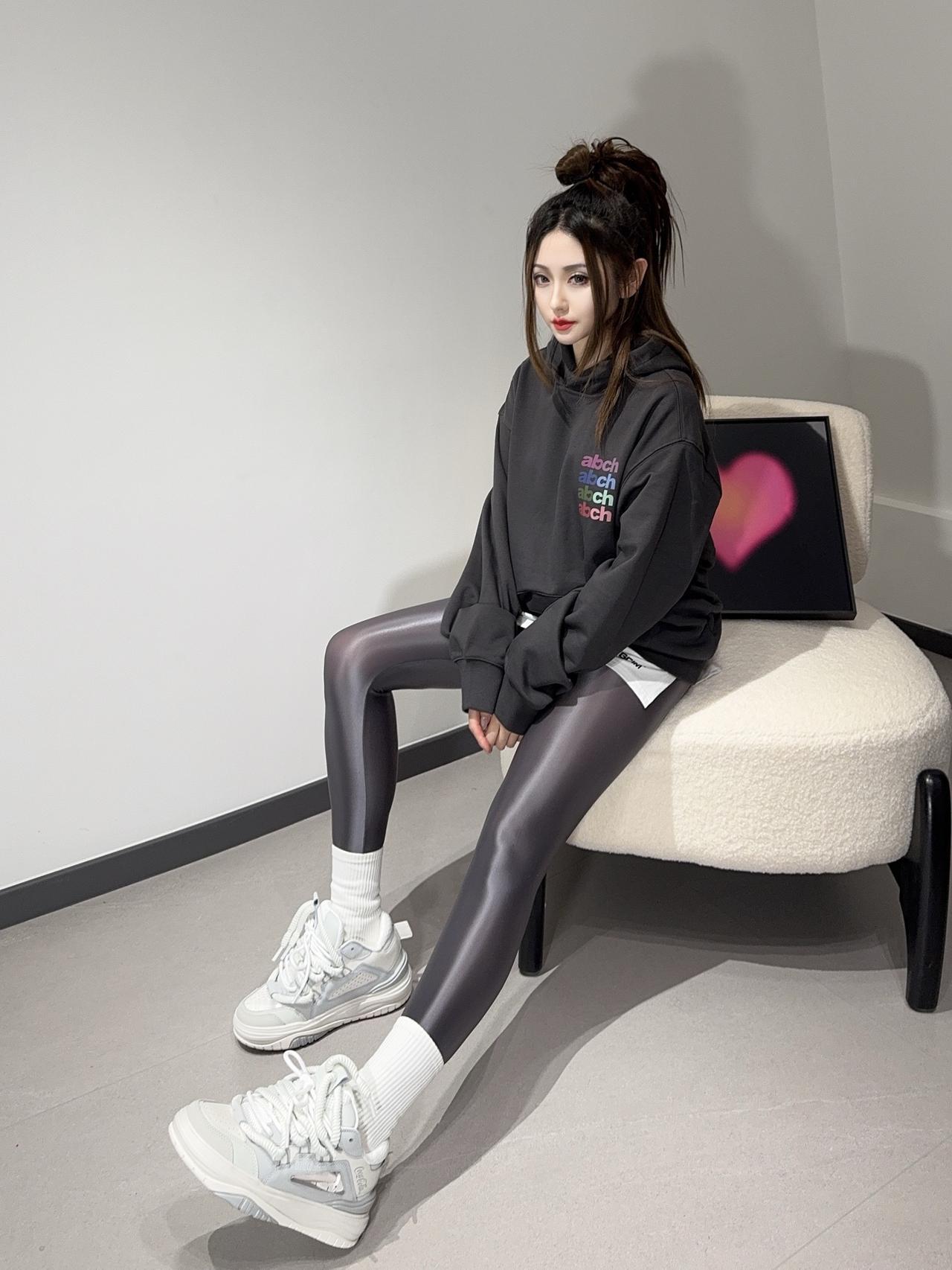 ootd穿搭 光泽裤 健美裤