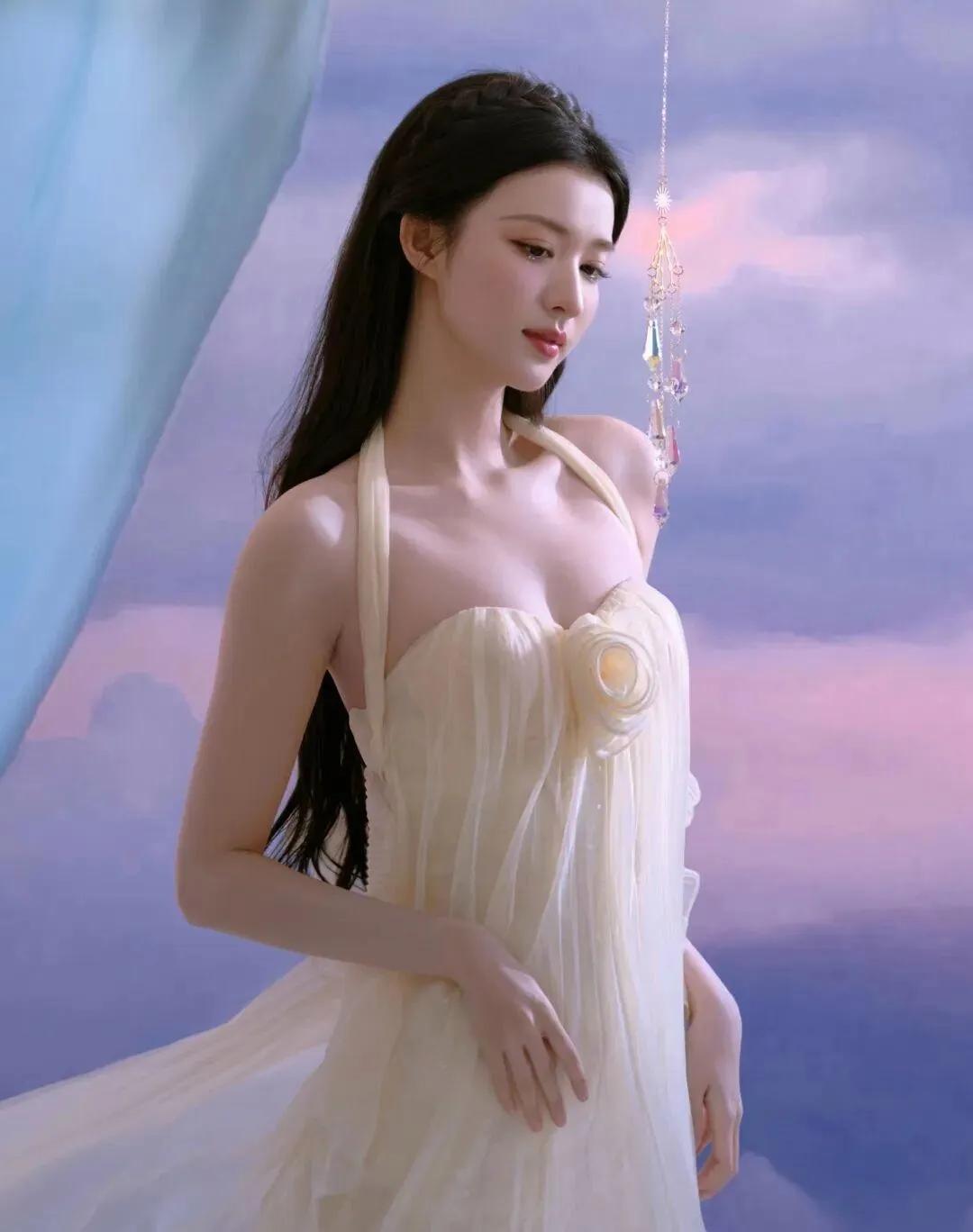 王楚然的吊带造型,美到犯规! 一袭米白色的吊带长裙,衬得她肌肤胜雪,气质清冷又温柔,像从画里走出来的仙女。 她的美,既有骨相的精致,又有皮相的柔美,真的太让人惊艳了!王然然 王楚燃吊带裙