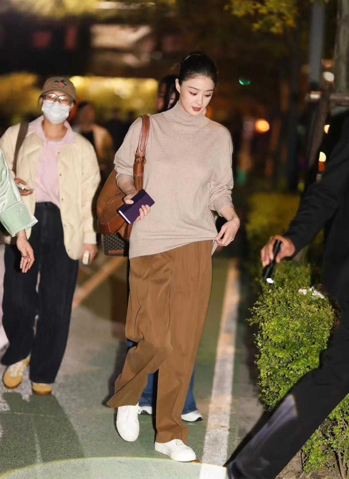 欣的这组穿搭,把"松弛感"穿在了身上! 驼色高领毛衣搭配一条棕色直筒裤,颜色高级又和谐,简约又有质感。 整套Look宽松却不显臃肿,反而衬得人很有气质,状态也太好了。 这样穿不仅舒服,还特别显高级,简直是秋冬穿搭的范本!