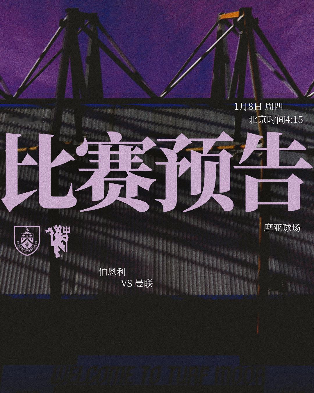 曼联继续客场之旅 ⚔️伯恩利vs曼联 🕗北京时间1月8日4:15 🏟️摩