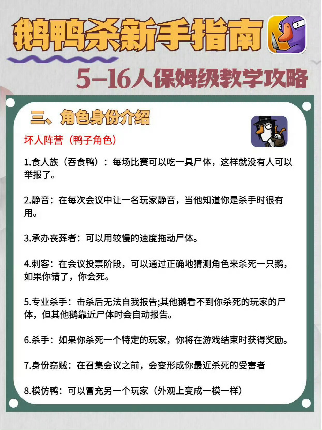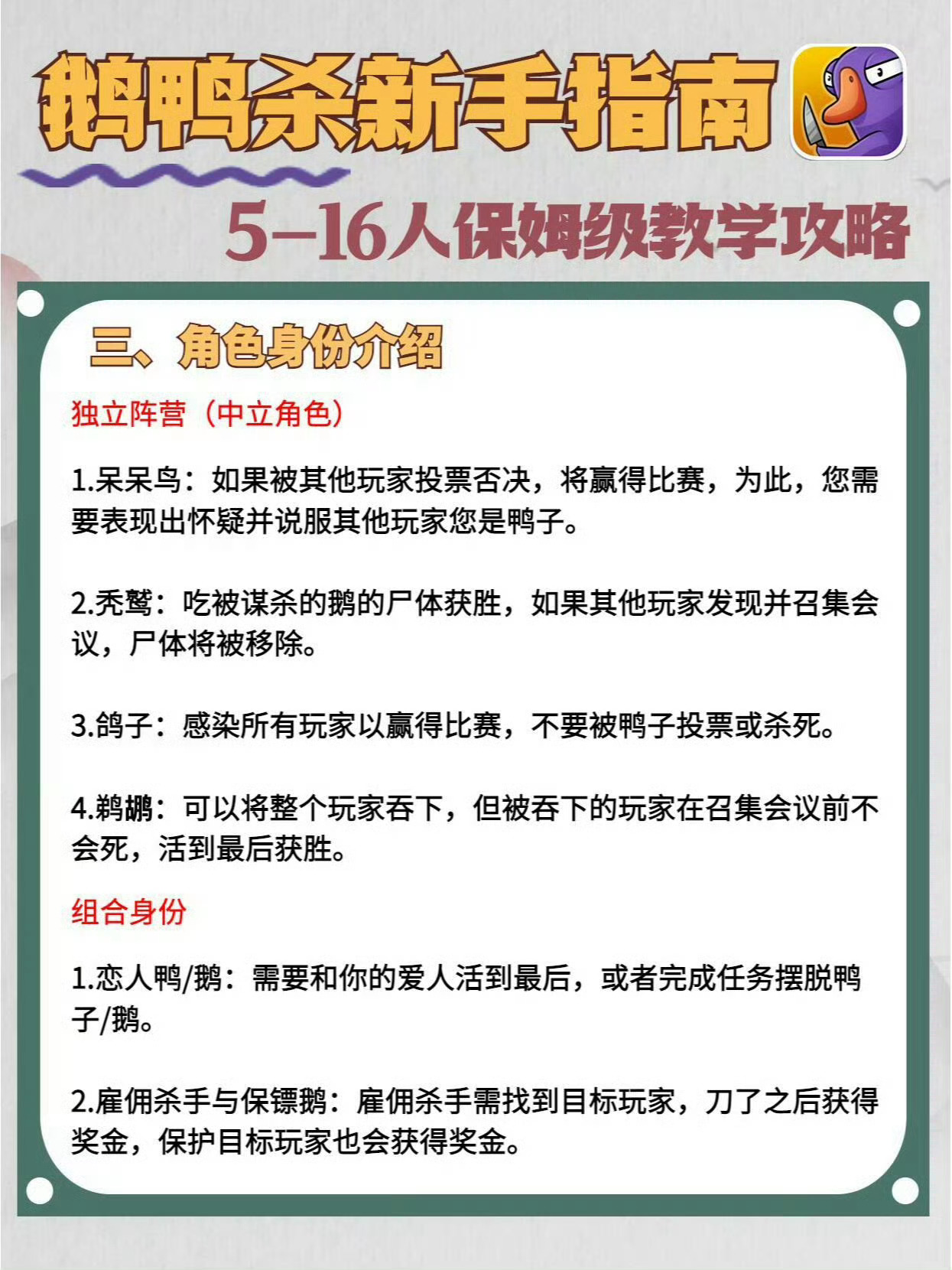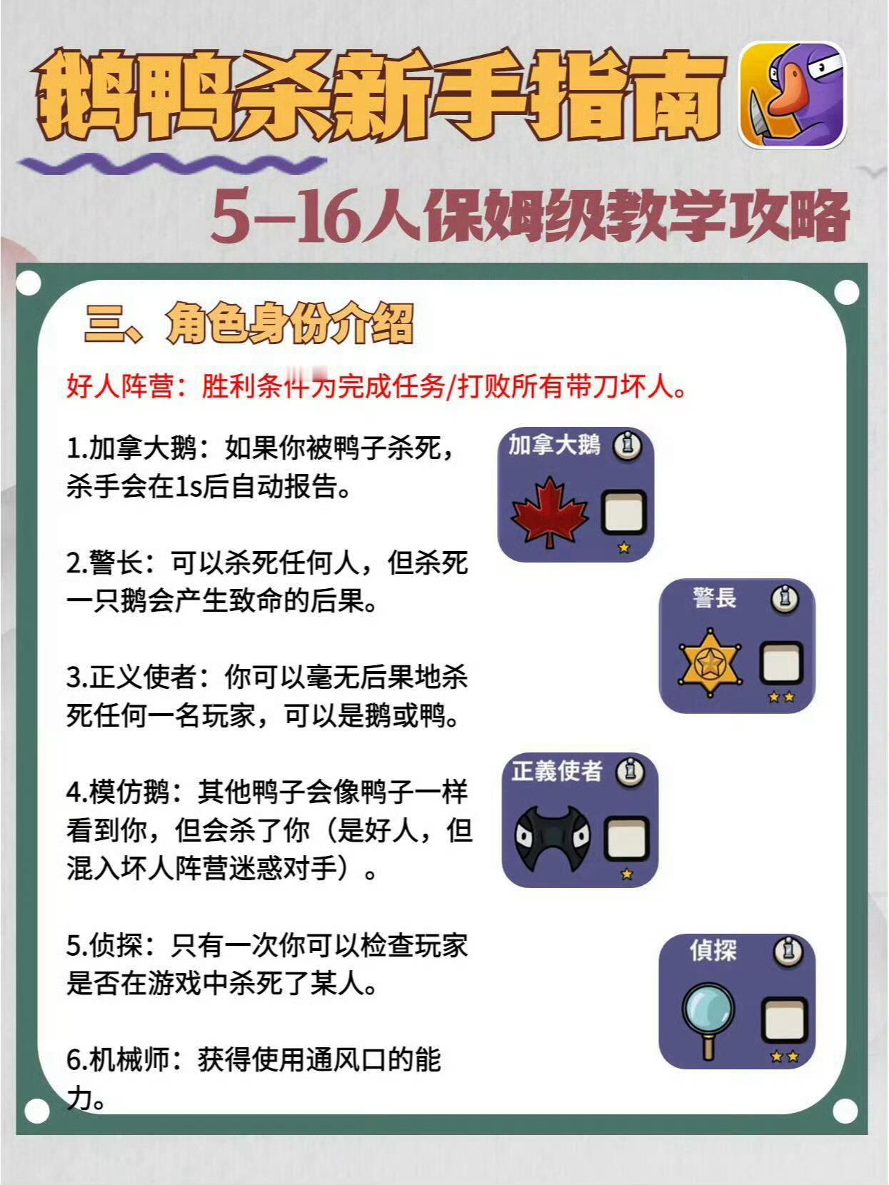 保姆级攻略来了,入坑必看!阵营角色,以及全角色玩法介绍。你会当鹅还是当鸭呢?鹅鸭杀玩法介绍鹅鸭杀测评