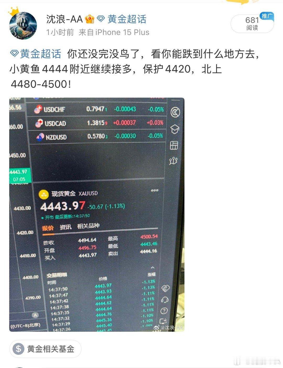 黄金 独出一掷,下跌又如何?最终还不是反弹上来了,小黄鱼我们在4455空和4444空,现在可以全部撤了,见好就收,我们求的是长久,要的是稳健,你说呢?