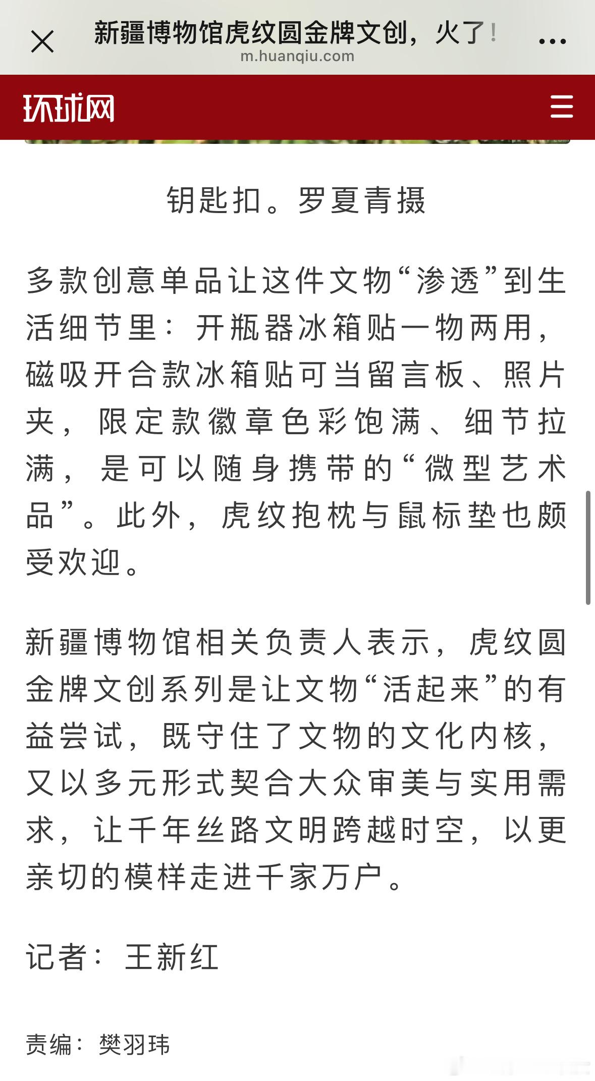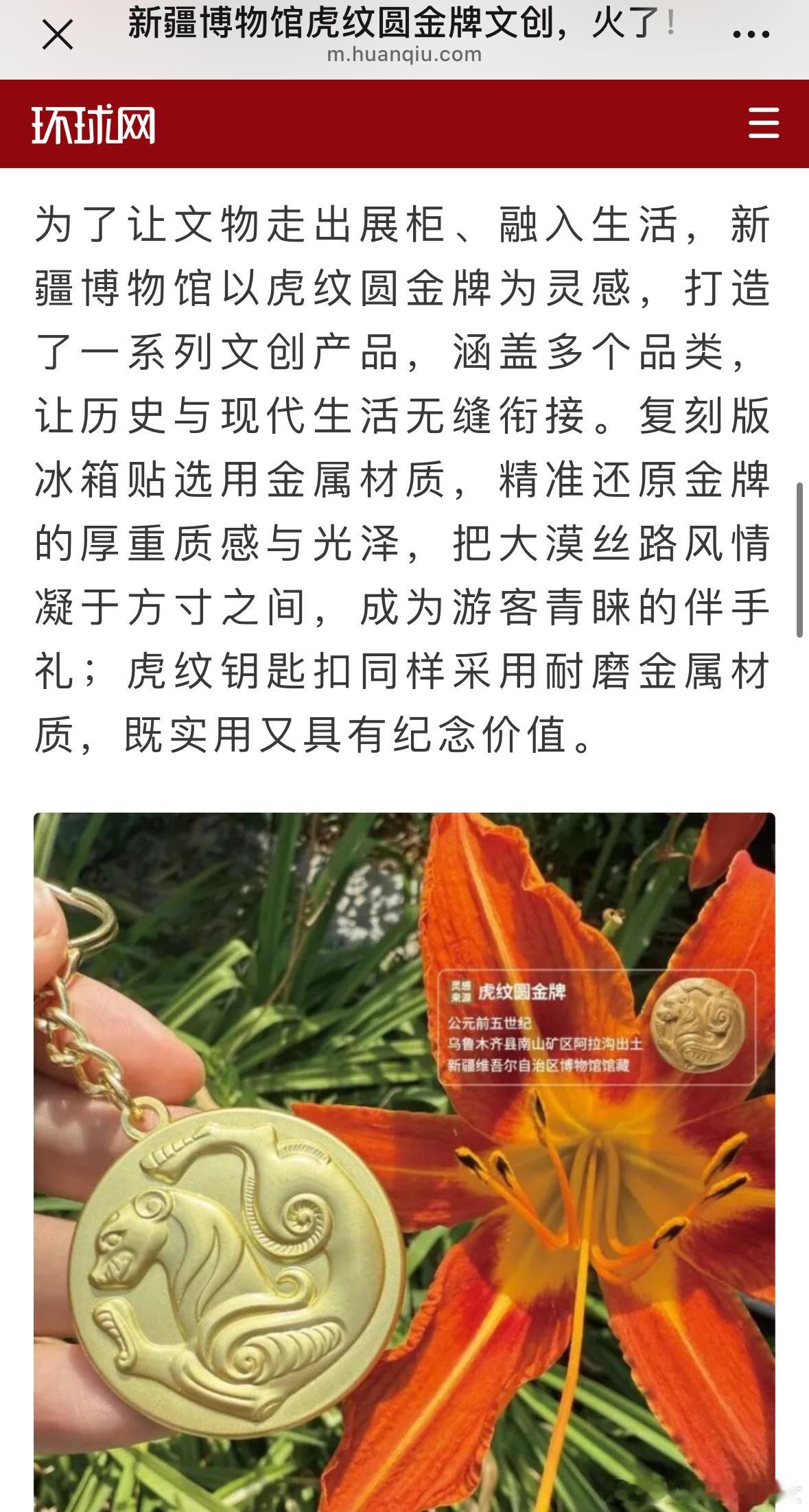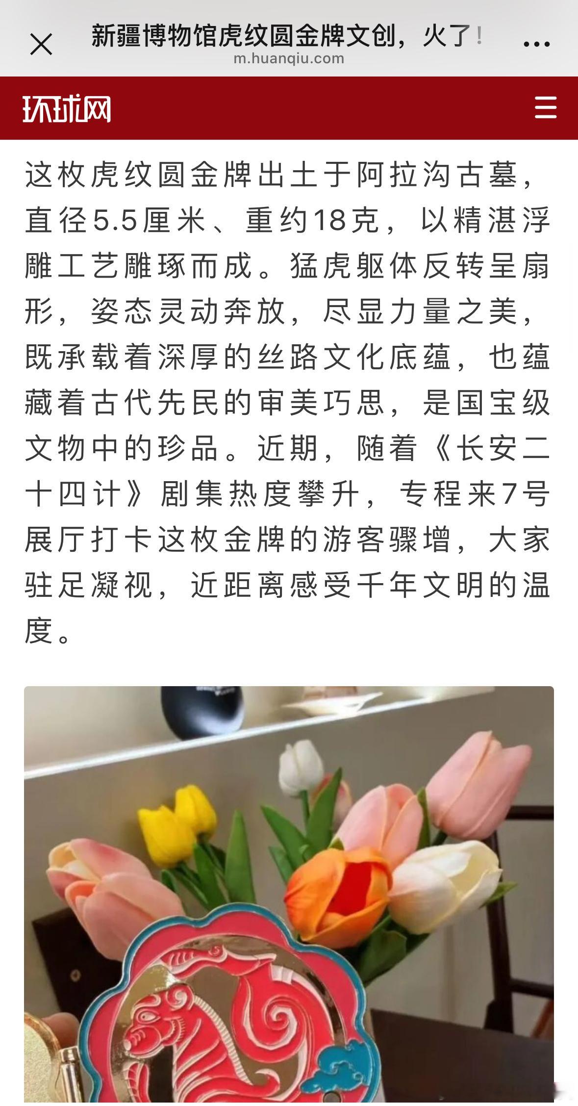 环球网报道:成毅长安二十四计的热播,新疆博物馆虎纹圆金牌文创火了,作为长安二十四计的道具原型,它已成为馆内最“吸睛”的文物。随着《长安二十四计》剧集热播,专程来打卡这枚金牌的游客骤增,大家驻足凝视,近距离感受千年文明的温度。这就是国产口碑爆剧的影响力啊,让文化传承