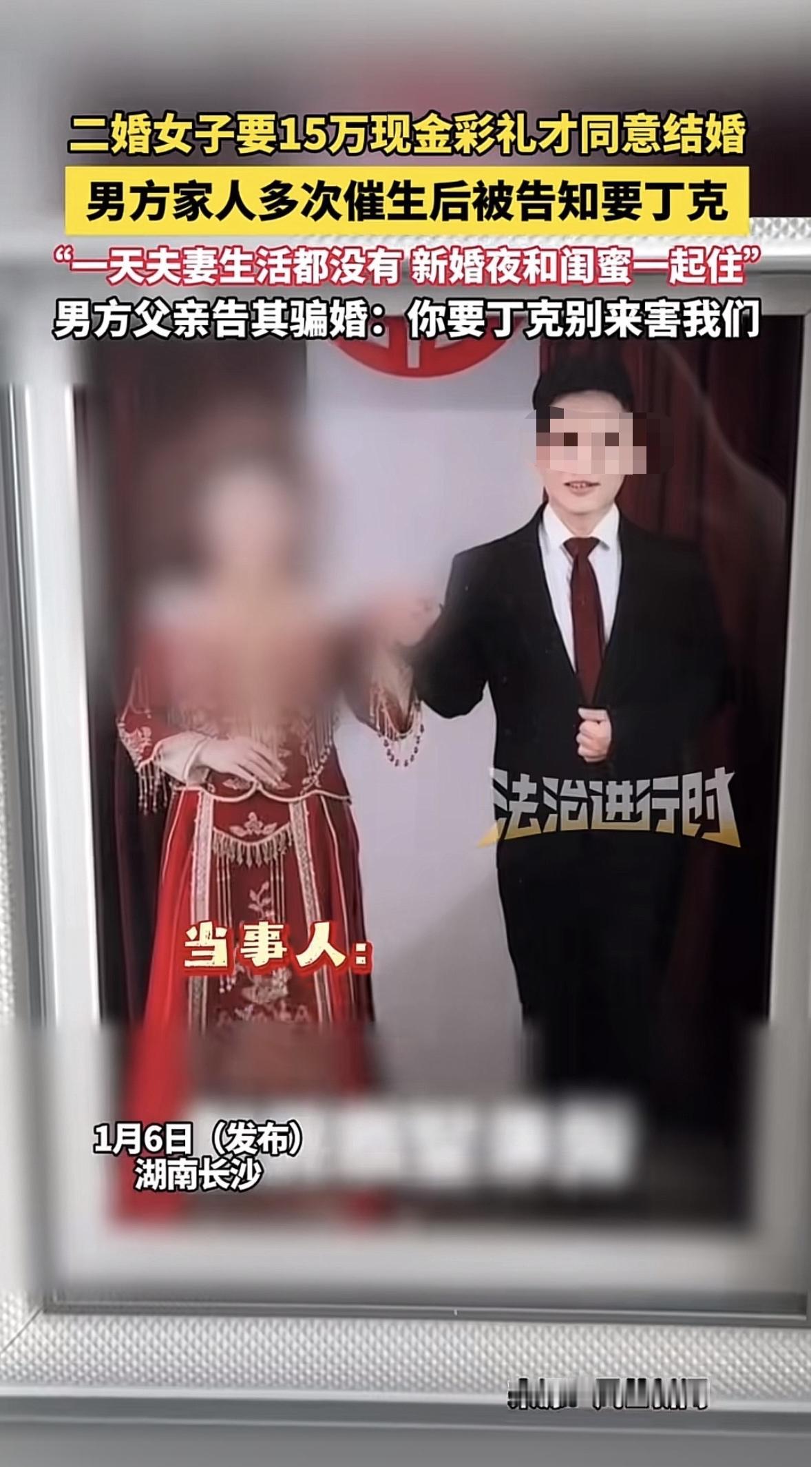 湖南长沙,男子花15万娶了个二婚女子,谁料新婚之夜,妻子竟晾着他,不肯圆房,还跑去和闺蜜挤了一宿,婚后妻子更是躲着他一般,跑去外地分居,还扯各种理由不肯回来,男方一家多次催女子回来给家里添丁,女子却说自己是丁克,不打算要孩子,男方父母眼看香火要断,彻底急了,当初他们不同意这门婚事,是女子信誓旦旦说婚后马上生孩子,他们这才同意女子嫁进门,又给了那么多彩礼,如今女子拿到钱就反悔,男方一家怀疑这是骗婚。 兆先生和李女士是经人介绍后在一起的。 虽然李女士离过一次婚,但兆先生对此并不介意,他觉得俩人凑一对,只要能踏实过日子就行,其他的都是浮云。 谈到彩礼时,李女士也是一点没含糊,张嘴就要8万8,再加五金折现。 林林总总加起来的话,得15万了。 15万娶个二婚媳妇,这价码确实不低。兆先生的父母一听这数,当时就不太乐意。 老两口开始打起退堂鼓,觉得这门亲事不靠谱,想让儿子再寻摸寻摸。 可兆先生这时候像是被下了降头一样,铁了心要娶。为啥?一方面是自己确实相中了,另一方面,李女士那张嘴太会说了。 她看兆家犹豫,就三天两头催婚,还保证只要结了婚,立马给兆家生个大胖小子。 此话一出,直接说到兆家老两口心坎上去了。在老人眼里,传宗接代是天大的事。 架不住儿子的软磨硬泡,再加上未来孙子的诱惑,老两口心一横,牙一咬:这婚结就结吧! 就这样,15万块钱到了李女士手上,婚礼热热闹闹地办了。 然而,这婚礼的喜糖还没化完,兆先生就觉得不对劲了。 新婚之夜,本该是洞房花烛、你侬我侬的时候,李女士却给了兆先生一个透心凉。 她压根就没打算跟兆先生圆房,找了个借口跑去跟闺蜜挤了一晚。 这还不算完,没过几天,李女士直接收拾铺盖去了外地,俩人这就算开始了牛郎织女般的分居生活。 兆先生独守空房,心里那个憋屈就别提了。但他还在自我安慰:也许媳妇是想先忙事业?也许是怕生孩子影响工作?毕竟婚前答应得好好的。 可纸终究包不住火。兆先生的父母眼看儿子结婚几个月了,儿媳妇肚子一点动静没有,急得是火上房。 老两口隔三差五就给儿媳妇打电话,好话说了一箩筐,中心思想就一个:赶紧生娃。 刚开始,李女士还找借口,说什么工作太累、压力大。后来被催急了,又搬出个新理由,说我妈刚给我找了个后爸,家里还有个年幼的弟弟,我得先帮着照顾弟弟,没空生孩子。 这话听着虽然荒唐,但兆家人为了抱孙子,也就忍了。 直到有一天,老两口实在忍不住了,把话挑明了问,说你到底啥时候生?我们都等着呢! 李女士被问的烦了,也不装了,冷冷地抛出一句:我早就打算好了,这辈子丁克,坚决不生孩子。之前怕你们闹,才没直说。 这一句话,让兆先生的父亲当时就气得浑身发抖。他指着儿媳妇质问,说你不生孩子?那你婚前咋不说?你要早说你是丁克,别说15万,就是倒贴钱我们也不敢要你啊!你这不是明摆着坑人吗? 李女士却是一副死猪不怕开水烫的架势,说钱我已经收了,婚也结了,反正我就这样,你们爱咋咋地。 兆先生这才回过味来。什么照顾弟弟,什么工作忙,全是缓兵之计!人家打一开始就没想给你生孩子,就是奔着这15万彩礼来的快速变现! 这不就是职业骗婚?拿生育当诱饵骗彩礼? 兆先生人财两空,彻底崩溃了。他觉得自己真是个冤大头。 一怒之下,兆先生一纸诉状把李女士告到了法院,要求离婚,并且必须退还这15万彩礼。 现在案子还在审理中,那从法律角度来看,法院可能会怎么判? 《最高人民法院关于审理涉彩礼纠纷案件适用法律若干问题的规定》第5条规定:双方已办理结婚登记且共同生活,离婚时一方请求返还按照习俗给付的彩礼的,人民法院一般不予支持;但是,如果共同生活时间较短且彩礼数额过高的,人民法院可以根据彩礼实际使用及嫁妆情况,综合考虑彩礼数额、共同生活及孕育情况、双方过错等事实,结合当地习俗,确定是否返还以及返还的具体比例。 兆先生与李女士虽办理了结婚登记,但婚礼当晚李女士即离家与闺蜜同住,随后长期分居两地。 法律意义上的“共同生活”不仅是法律形式上的夫妻关系,更包含物质上的相互扶持、精神上的相互慰藉以及夫妻义务的履行,包括同居义务和生育义务。 案件中,双方只有婚礼这一形式,缺乏持续、稳定的共同生活事实。 李女士利用生孩子的承诺诱导兆先生支付高额彩礼。婚后不仅未履行夫妻同居义务,还隐瞒真实生育意愿,这种行为被法律评价为“以结婚为名索取财物”或“欺诈”。 根据法条,如果一方存在重大过错,即便已经登记结婚,法院也可判决返还彩礼。 李女士的行为严重违背了公序良俗和婚姻的忠实义务,属于重大过错方。法院极大概率会判决李女士返还大部分彩礼,而非全额或不退。 对此,你怎么看? 关注@运良说法 学法律知识不迷路