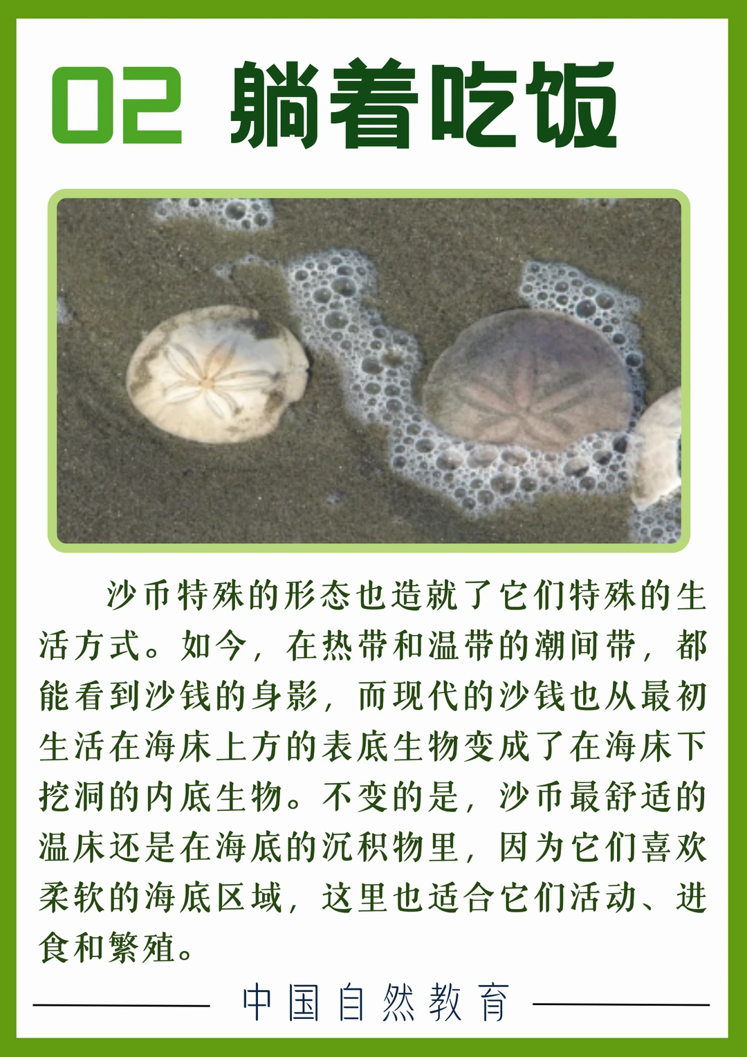 沙币,又名沙钱、沙元或海钱,是对棘皮动物门海胆纲楯形目物种的通称,所以也可以看成是一类特殊的“海胆”。当活着的沙币死后被冲上海滩,历经风吹日晒后被漂白,对于以前的老赶海人来说,就像沙子中掩埋着一枚大银币,因此得名“沙钱”。