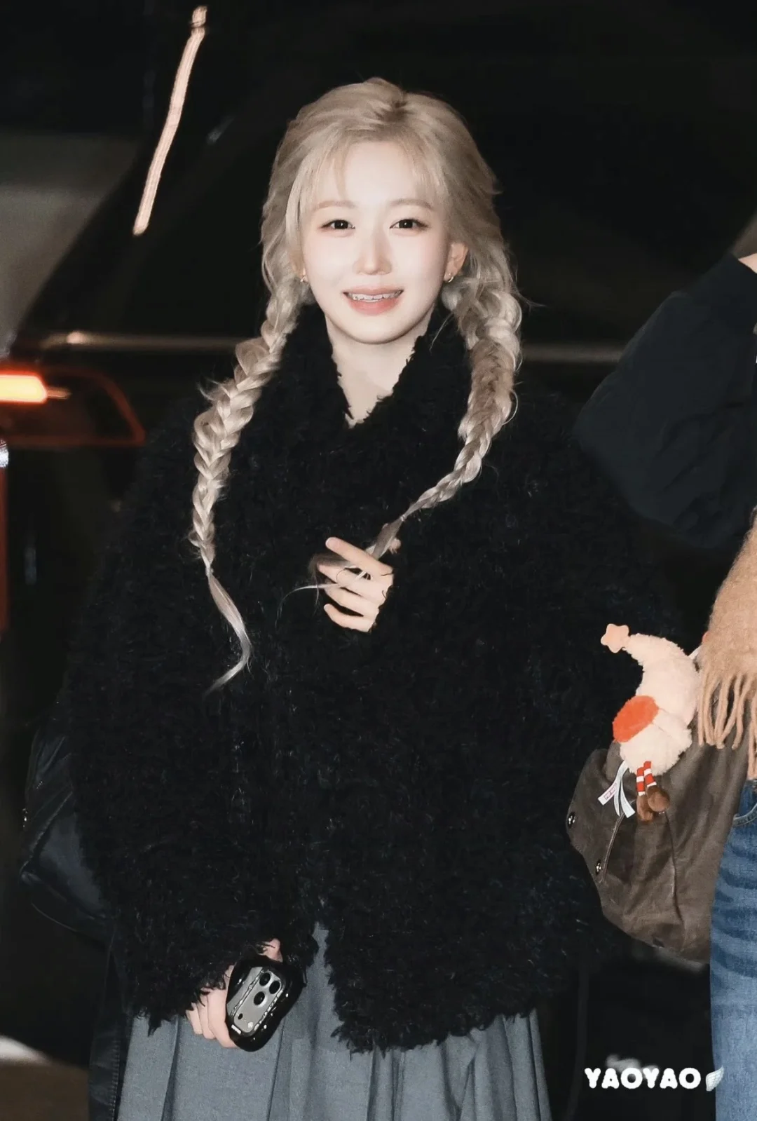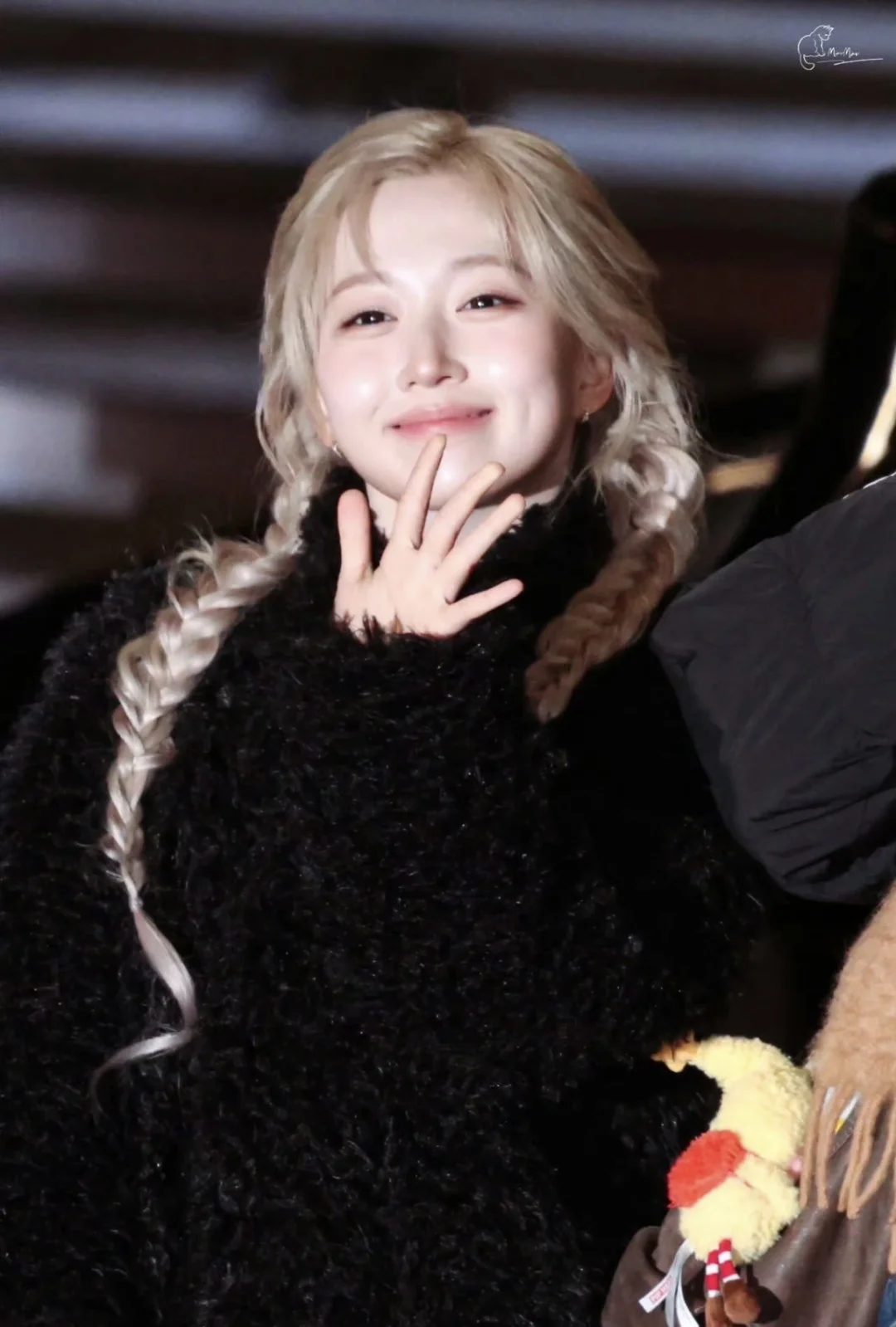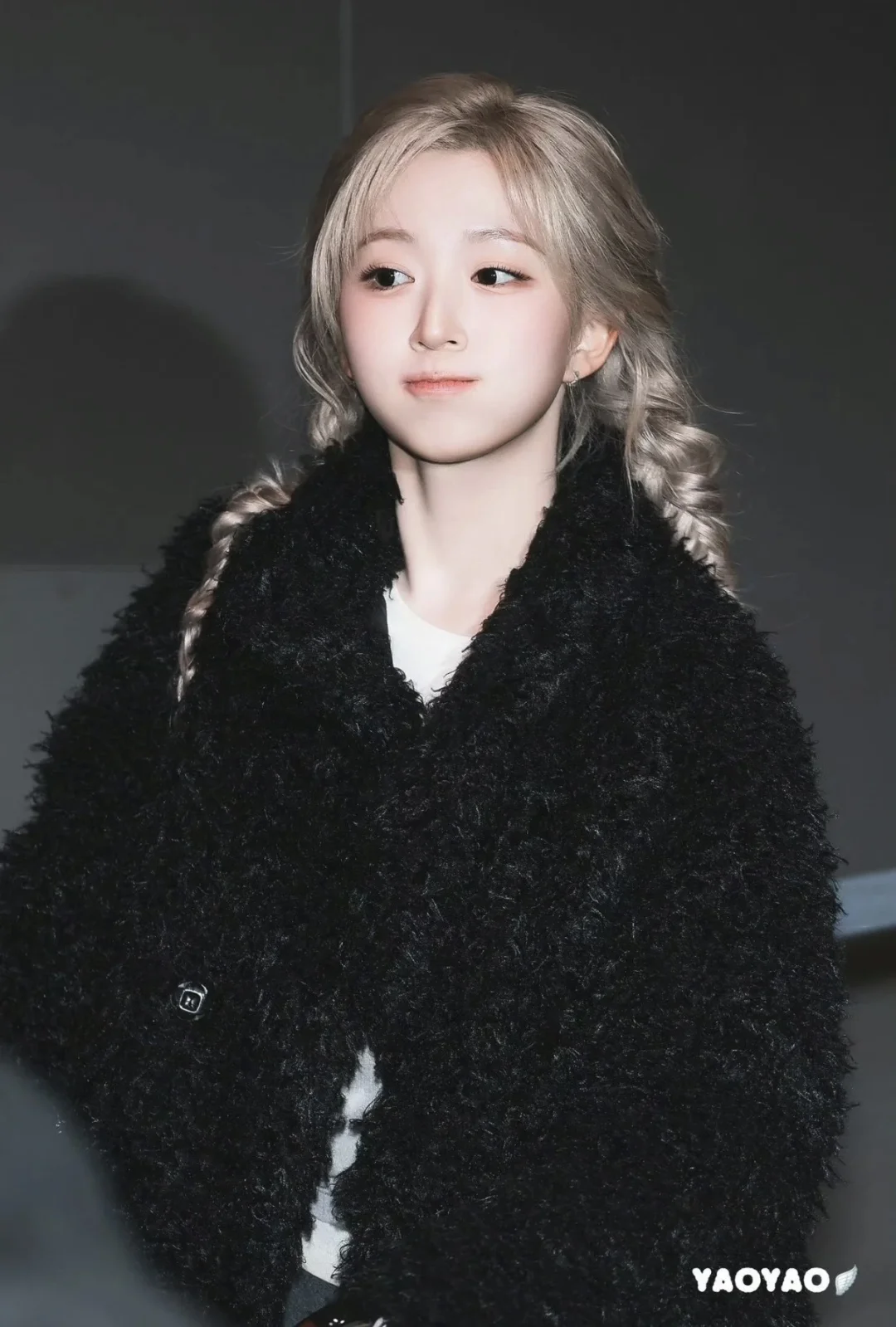 吴海媛机场look鲨疯了!金发双麻花辫一整个迪士尼在逃公主既视感👸 上身选了黑色毛绒外套,软糯又显贵,下身搭灰色不规则百褶裙,打破沉闷还添了设计感,白袜+乐福鞋的组合又把学院风拉满。 金发和黑灰系穿搭撞出的反差感,公主气和街头感融合得刚刚好,这穿搭思路我锁死了!