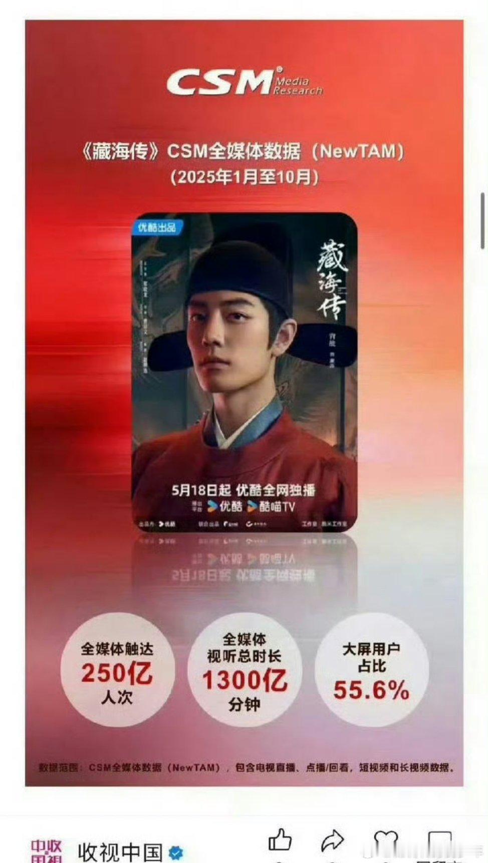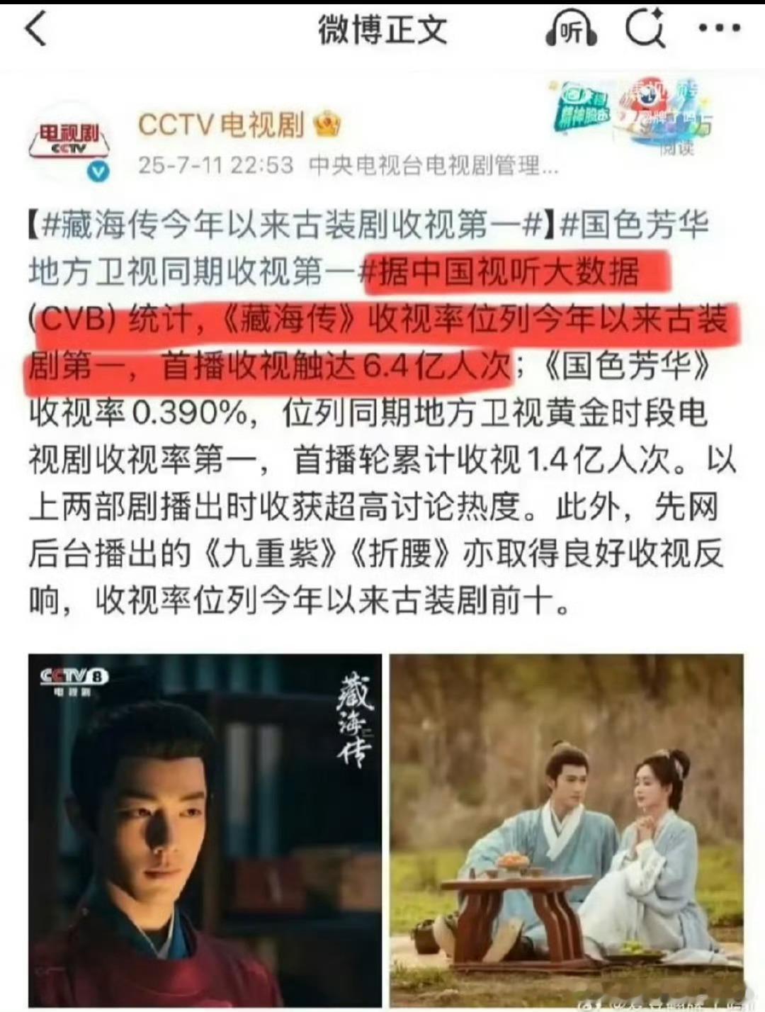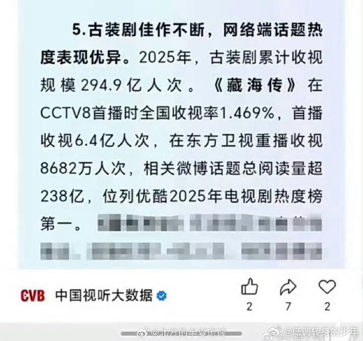 藏海传首播收视6.4亿人次人次和户次都分不清楚《藏海传》CCTV8首播时全国收视率1.469%,首播收视6.4亿人次,在东方卫视重播收视8682万人次,位列优酷2025年电视剧热度榜第一, 学渣别一天天碰瓷学霸真的很尬!藏海传首播收视6.4亿人次