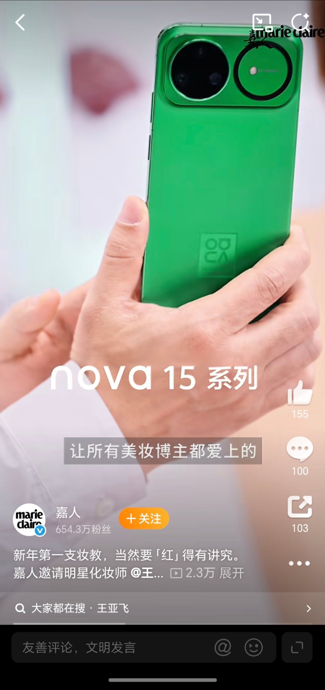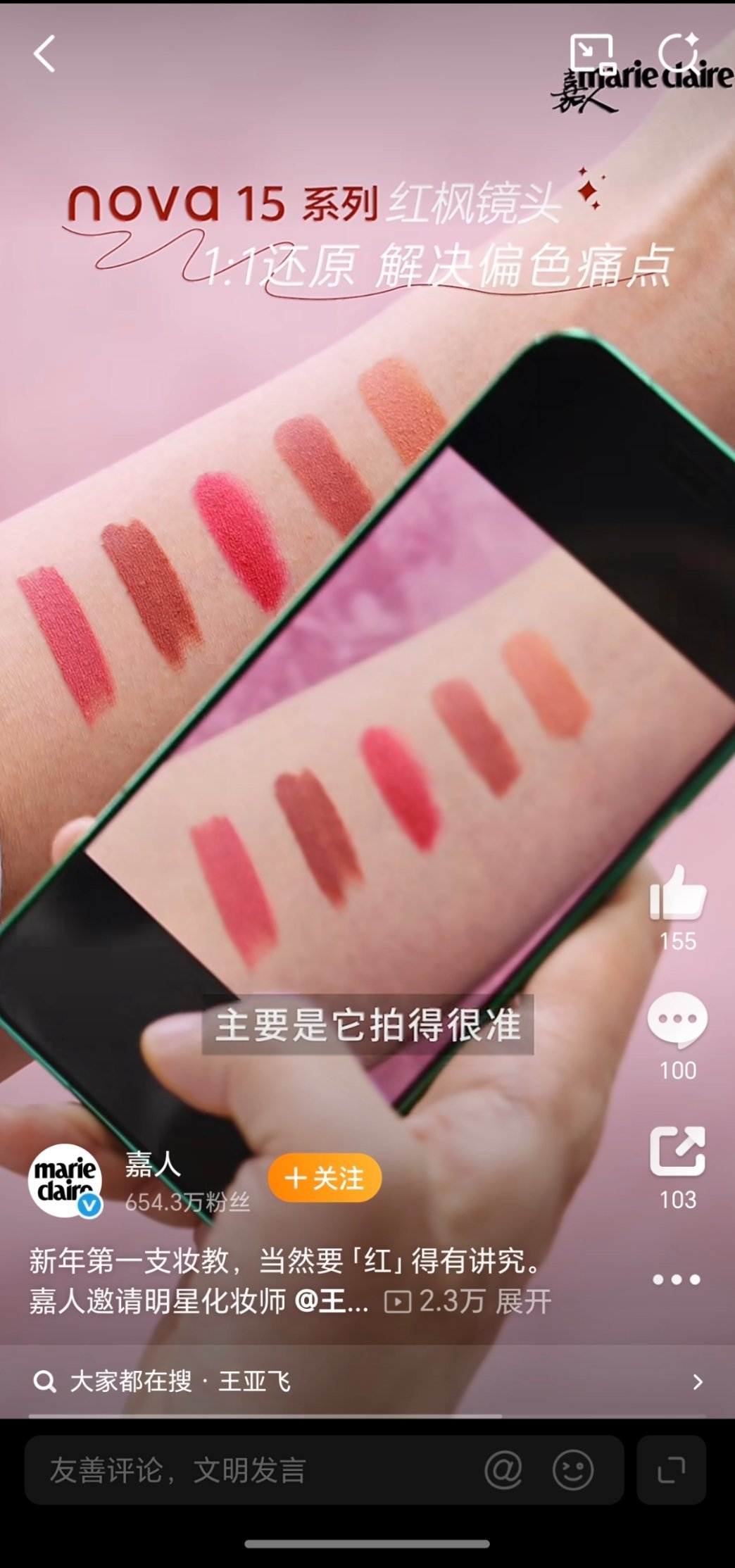 nova15成美妆试色专用机新年涂啥口红最显白?腮红扫多高才像“妈生好气色”?别